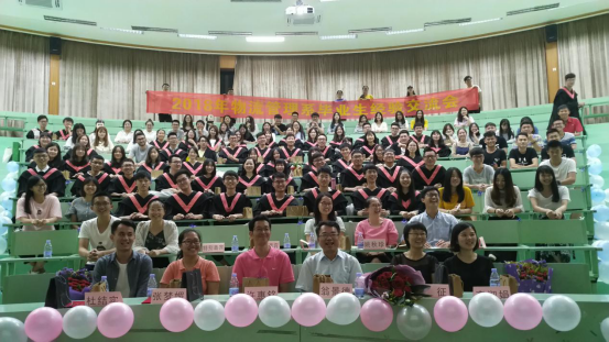 (全体合影留念) 毕业生代表张洪乐、黄雪、梁承洲分别做了经验分享。会间,李征老师作了讲话,表达了对毕业生的关怀与叮咛。