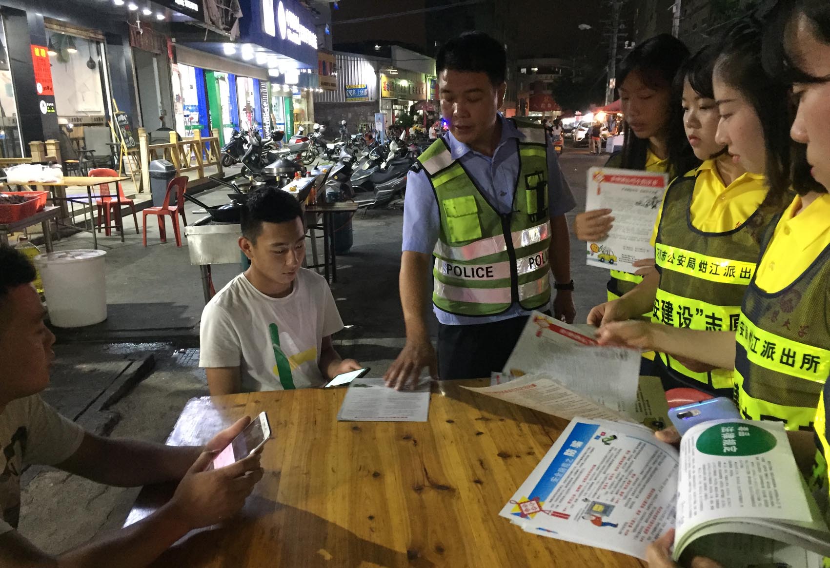 日前,在蚶江派出所民警、协警人员的带领下,6776永利集团赴石狮蚶江派出所警营实践队到洪窟社区讲解、宣传各类安全知识,发放《平安蚶江倡议书》《崇尚科学 反对邪教》《珍爱生命 拒绝毒品》《拒绝酒后驾车倡议书》《安全防范之防骗》等宣传材料,走访各大中型企业与重点单位,检查消防安全,检查物流快递包裹三个100%,开箱检查是否存在易燃易爆物品以及加油站消防安全及散装汽油登记检查。