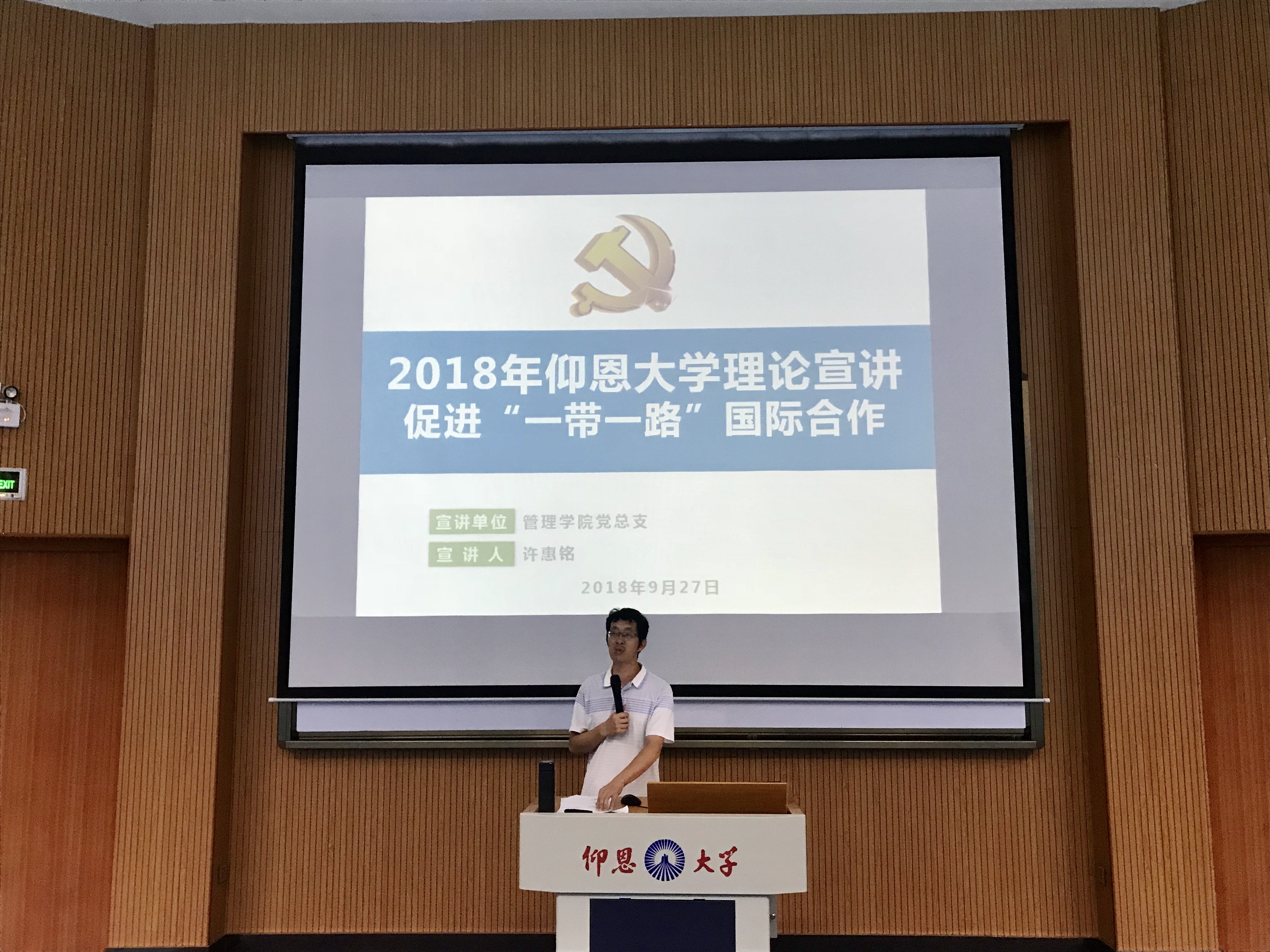9月27日下午,我院在第一教学区和昌教学楼求是讲堂开展了以《促进“一带一路”国际合作》为主题的理论宣讲活动。6776永利集团党总支书记兼常务副院长许惠铭为全院师生党员及入党积极分子作主题宣讲。
