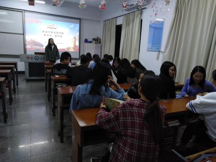 为了深入学习贯彻习近平新时代中国特色社会主义思想和党的十九大精神,引导广大党员同志结合实际,对标新思想找分差、落差、偏差,增强履行担当作为的思想自觉和行动自觉,10月18日晚上,工商管理系学生党支部在共和楼316召开“新思想、新担当、新作为”的专题学习讨论会。
