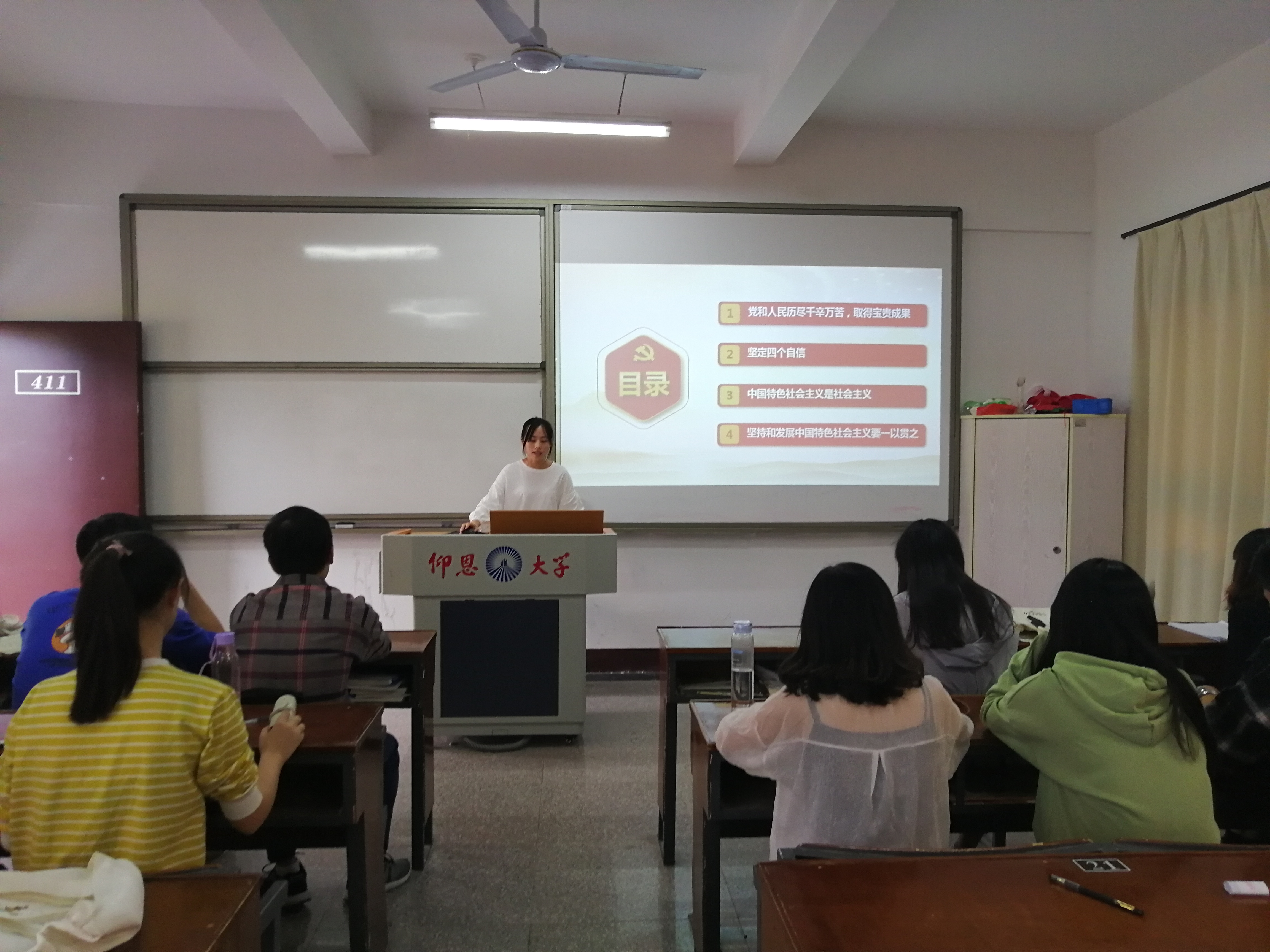 10月18日下午,市场营销系学生党支部在共和楼411开展关于《当代中国发展进步的根本方向》专题党课学习活动。市场营销系学生党支部全体党员参加专题学习。