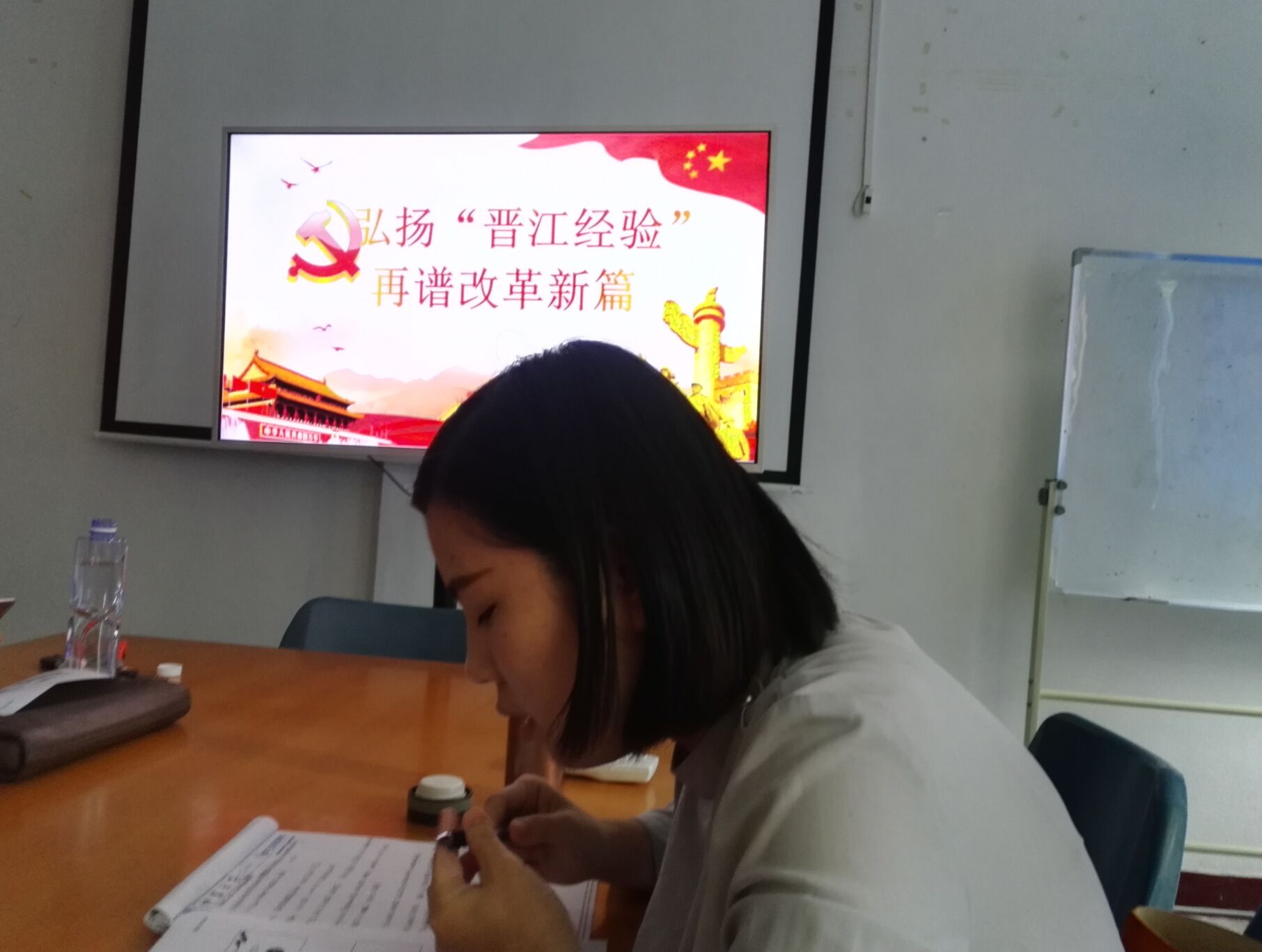 李淑娟同志作分享 最后,李淑娟同志为支部成员分享了《弘扬“晋江经验”,再谱改革新篇》的心得体会,号召支部成员“敢为天下先,爱拼才会赢”。(6776永利集团教工党支部/图文)
