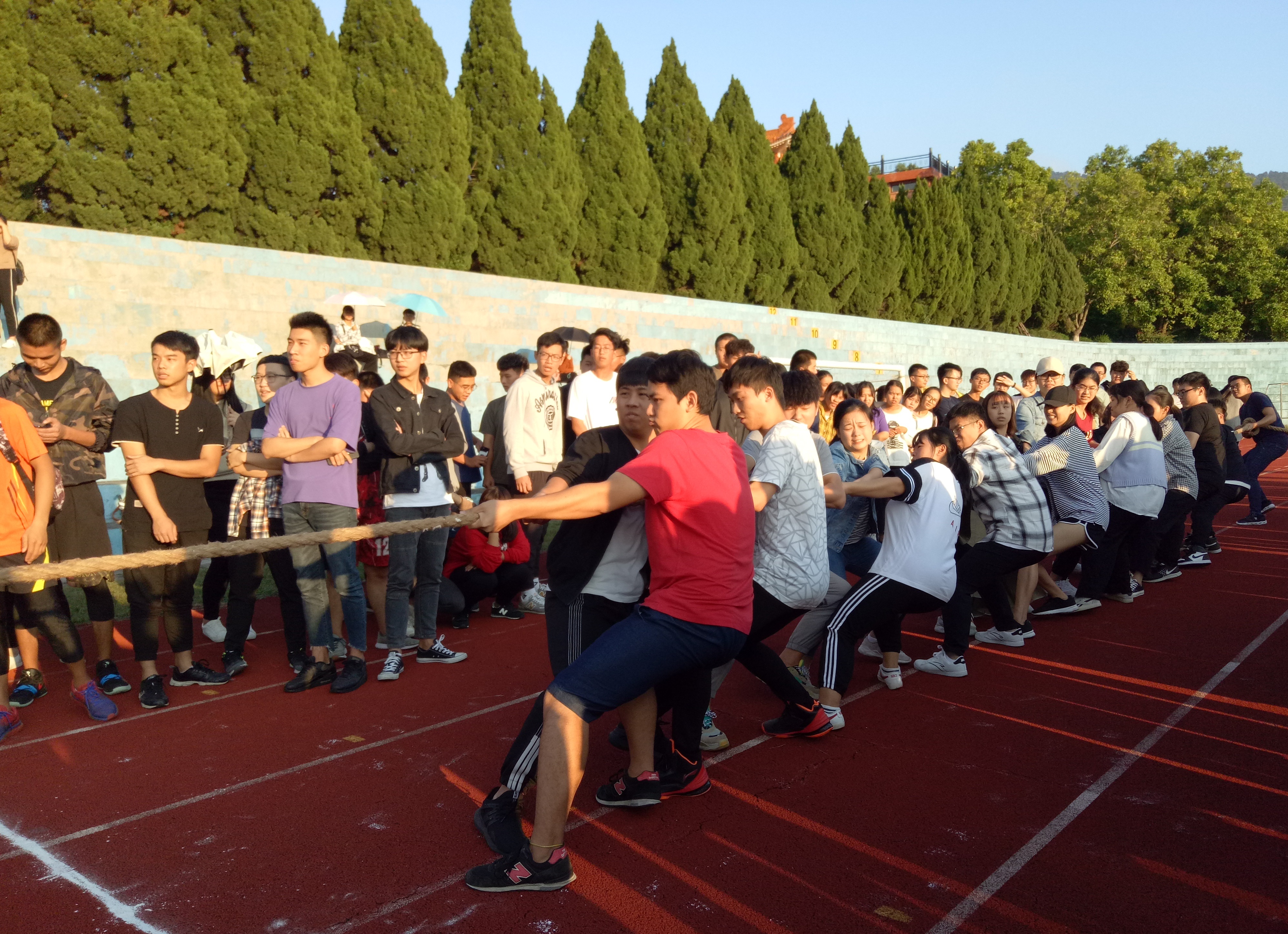 11月5日下午,yl6776永利集团第二十七届校运会拔河比赛在第一教学区仰基场举行。