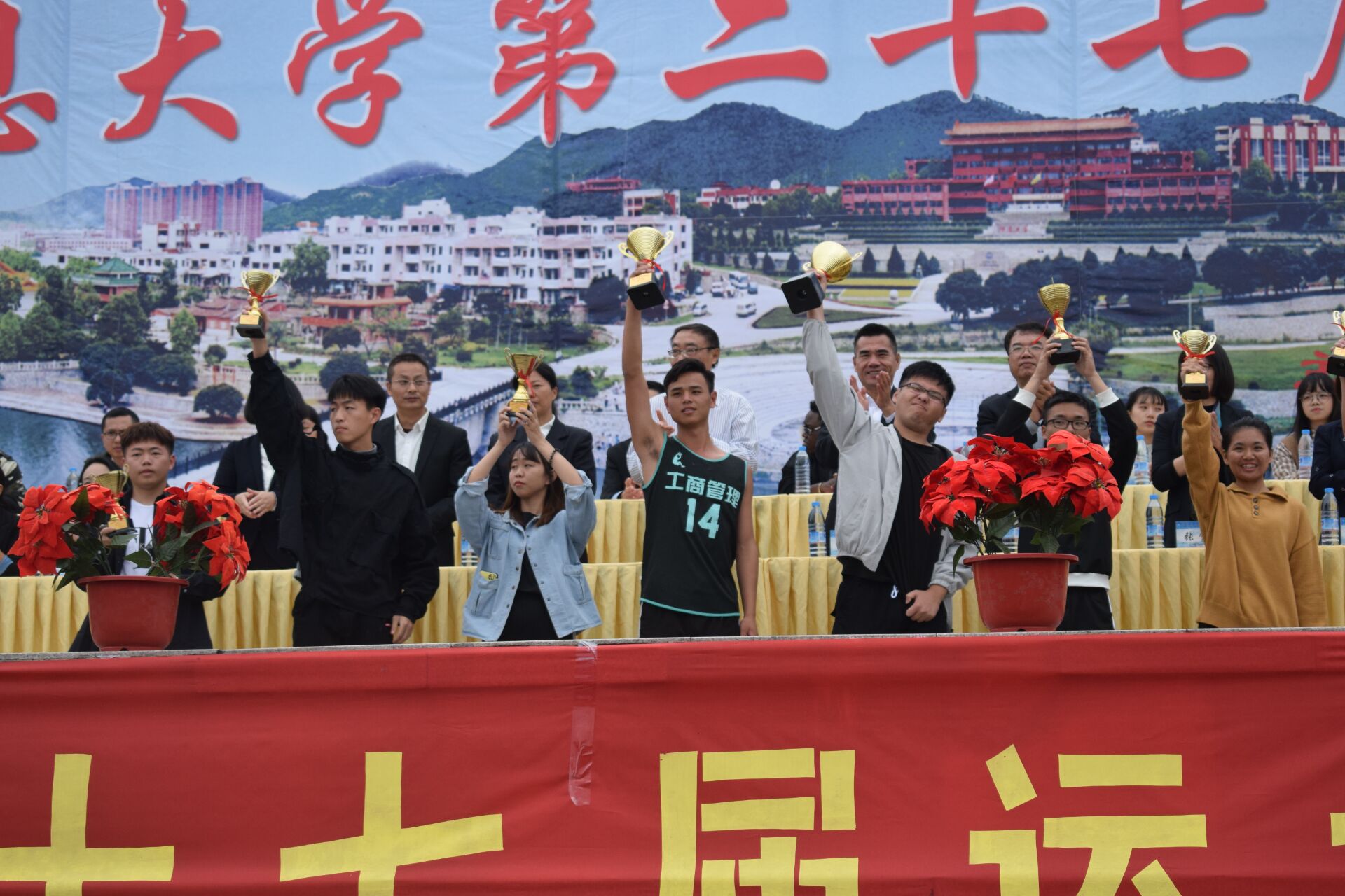 奖杯与奖状 运动会期间,工商管理系全体师生团结友爱、通力协作,赛场上运动员奋力拼搏,赛场下同学们加油助威。竞赛过程中充分展现了我系师生的运动实力与体育精神,展示了我系运动健儿良好的精神风貌。希望工商管理系学子以本次运动会为契机,赛出成绩,赛出自我,不断努力拼搏、再创佳绩!(工商管理系/图文)