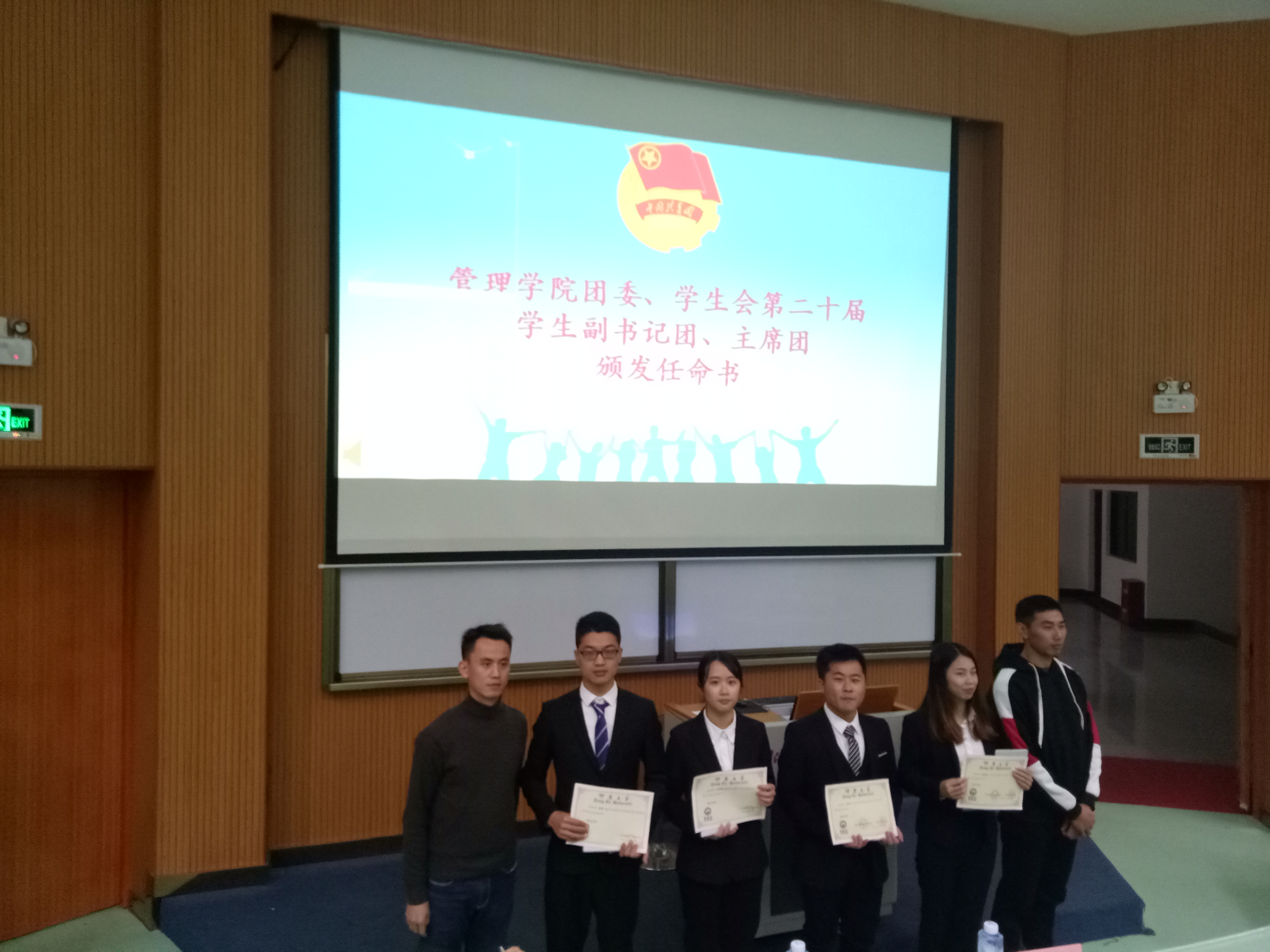 1月3日下午,我院团学干部换届交接大会在第一教学区和昌教学楼乐之讲堂举行。我院团委书记杜结实、公共管理系团总支书记徐鸿飞到场参加。
