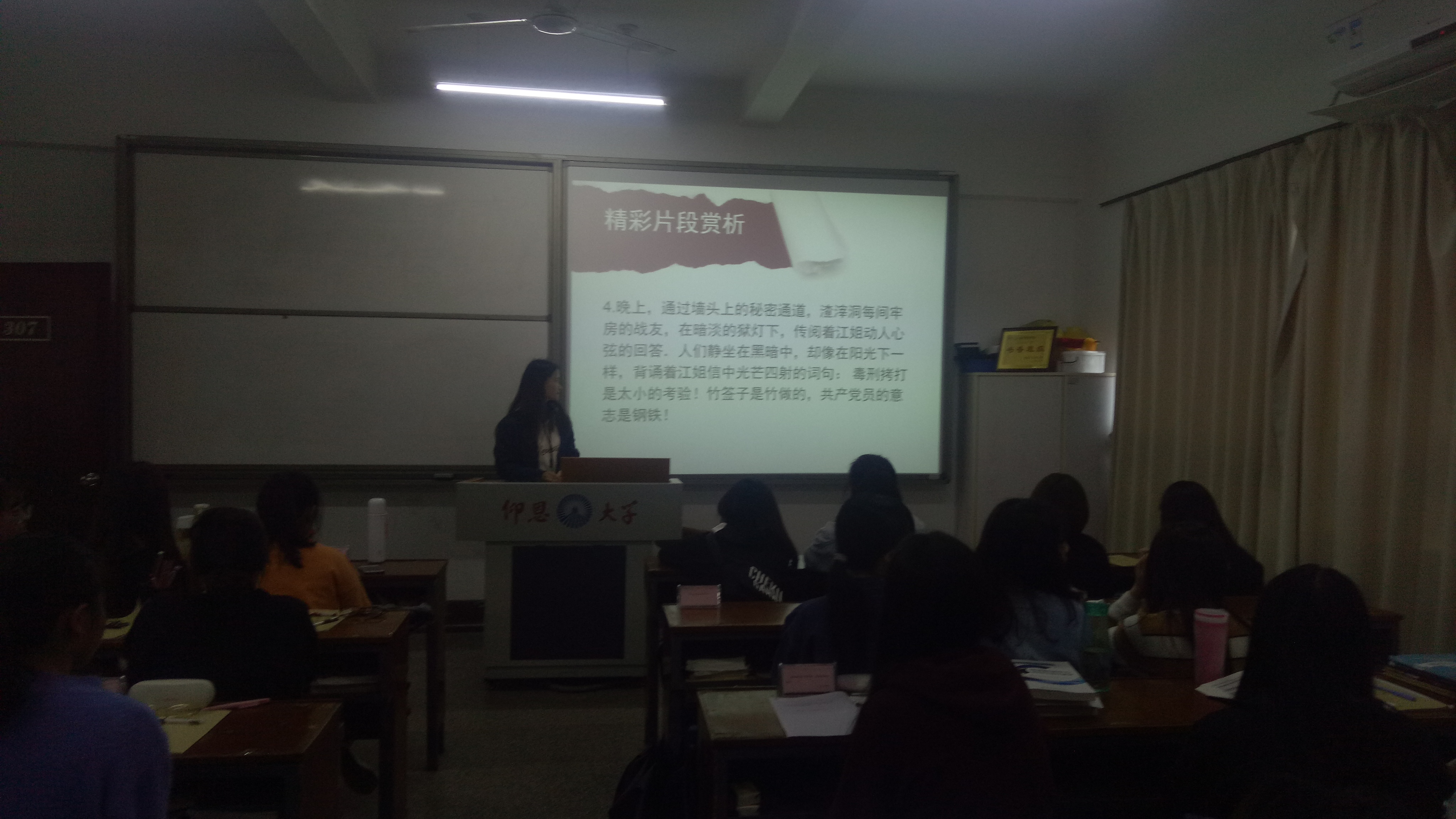 共读《红岩》 活动中选取《红岩》作为本次共读的书籍,首先对《红岩》做了一个介绍,揭示本书的背景是人民解放军进军大西南时国民党当局对共产党的疯狂镇压,以此解读英雄内涵,引发对英雄的崇敬,对英雄精神进行思考。之后,节选精彩片段进行赏析。“任脚下响着沉重的铁镣,任你把皮鞭举得高高,我不需要什么‘自白’,哪怕胸口对着带血的刺刀!人,不能低下高贵的头,只有怕死鬼才乞求‘自由’,毒刑拷打算得了什么,死亡也无法叫我开口!对着死亡我放声大笑,魔鬼的宫殿在笑声中动摇,这就是我——一个共产党员的‘自白’,高唱凯歌埋葬蒋家王朝!”这是小说《红岩》中共产党员成岗写的《我的“自白书”》。短短几句话就足以展现出共产党员为保家卫国不怕牺牲的奉献精神。