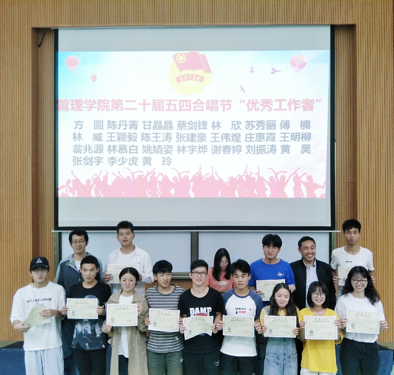 颁奖 大会首先由副院长庄海刚致开场词,后由学院领导、老师为获得“泉州市2018年度五四红旗团支部和优秀共青团员”、“yl6776永利集团2018年度五四红旗团委、五四红旗团总支、五四红旗团支部、优秀共青团干部和优秀共青团员”、“6776永利集团2018年度优秀共青团干部和优秀共青团员”、“第二十届五四合唱节6776永利集团优秀工作者和优秀个人”等先进集体与个人颁奖。大会现场,掌声不断。