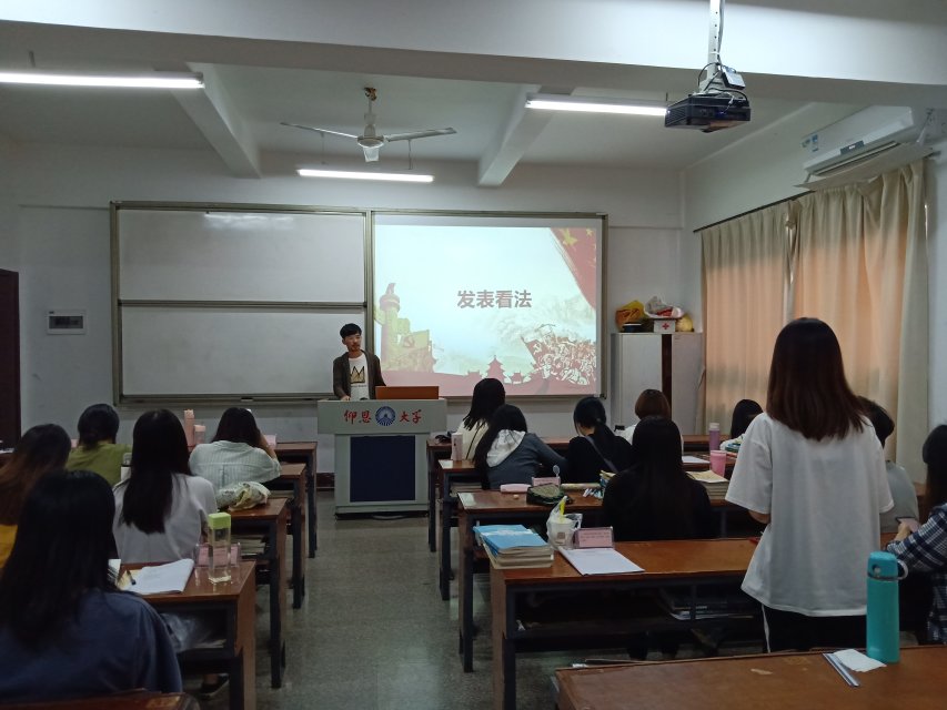 活动现场 活动伊始,何亿杰同志先调查了在场的同志们对时事热点的关注程度,结果不尽人意,大部分同志们很缺乏了解时事热点的意识。为进一步了解时事事件背后代表的真正含义,主持人将在场的同志们分为4组,并在黑板上写出近期的时事新闻:“中美贸易战”、“华为公司退出美国市场”、“力争年度取消高速公路省界收费站”,要求各小组进行分析、讨论、交流、挖掘其内涵。在分享环节中,大家对于“中美贸易战对本专业未来就业形势是否有很大影响”,“爱华为手机就是爱国吗”等问题纷纷结合自身实际提出自己的看法。