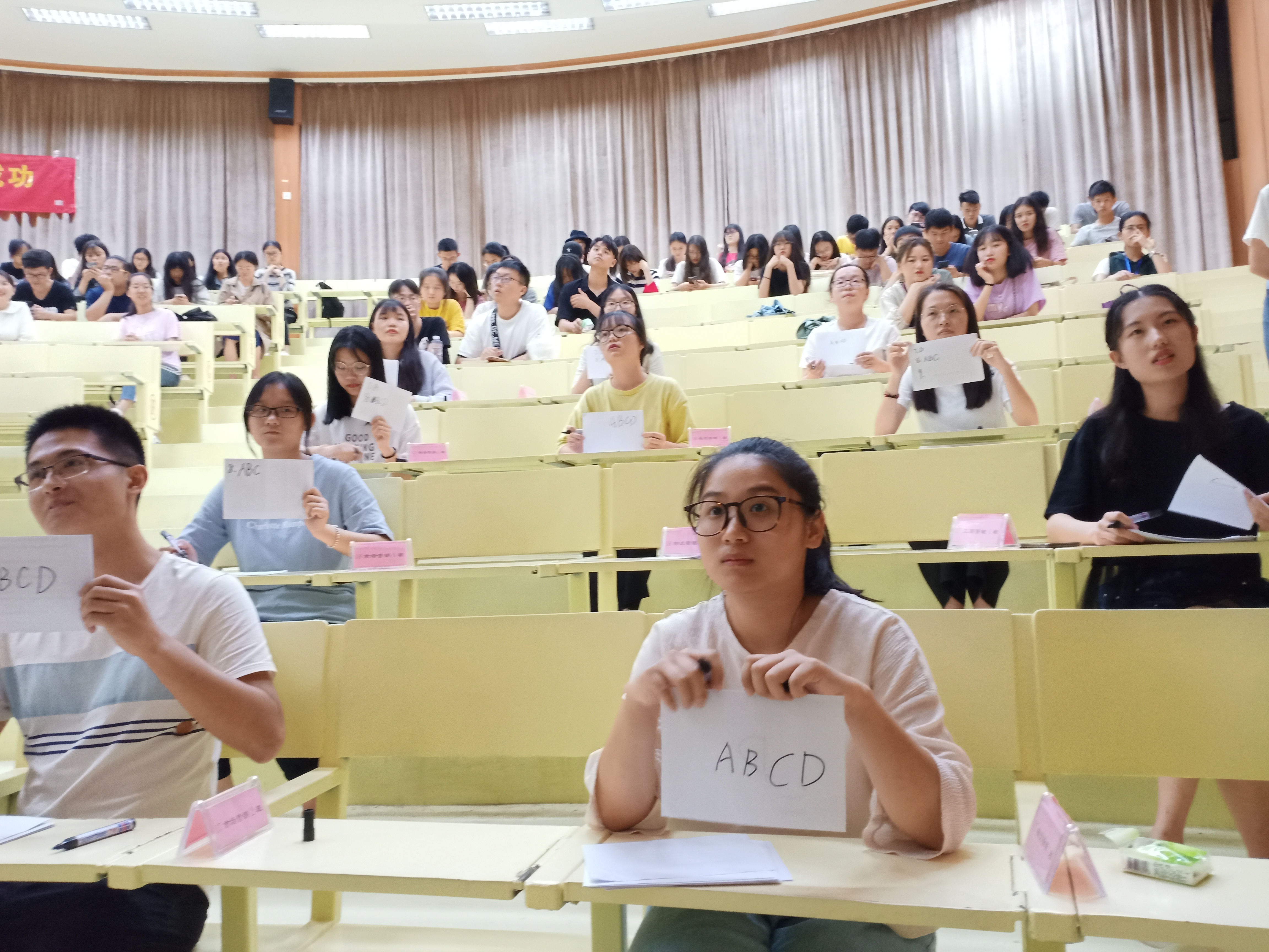知识竞赛现场 本次比赛全院共有21个班级参与,每班选派3名学生,比赛分为必答题、抢答题和主观题3个环节,竞赛以习近平新时代中国特色社会主义思想、国家资助政策、扶贫知识为主要内容。经过激烈的角逐,2017级工商管理2班荣获一等奖,2018级市场营销专升本荣获二等奖,2018级市场营销1班荣获三等奖,2016级工商管理2班和2018级物流管理1班荣获优秀奖,林伟华荣获优秀个人。