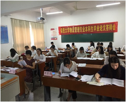 答辩紧张进行中 经过一天的认真工作,物流管理系2019届本科毕业生论文答辩工作顺利结束,达到了预期效果。整个答辩工作流程安排合理、老师严谨负责、同学精心准备、现场秩序井然,受到了同学们的一致好评。