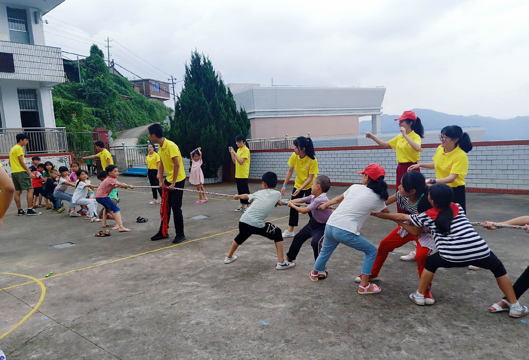 实践队员组织留守儿童开展拔河比赛