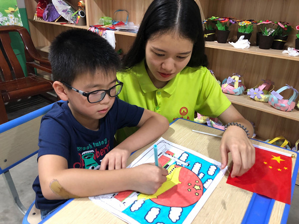 实践队员为“洋留守儿童”开展爱国主义教育活动