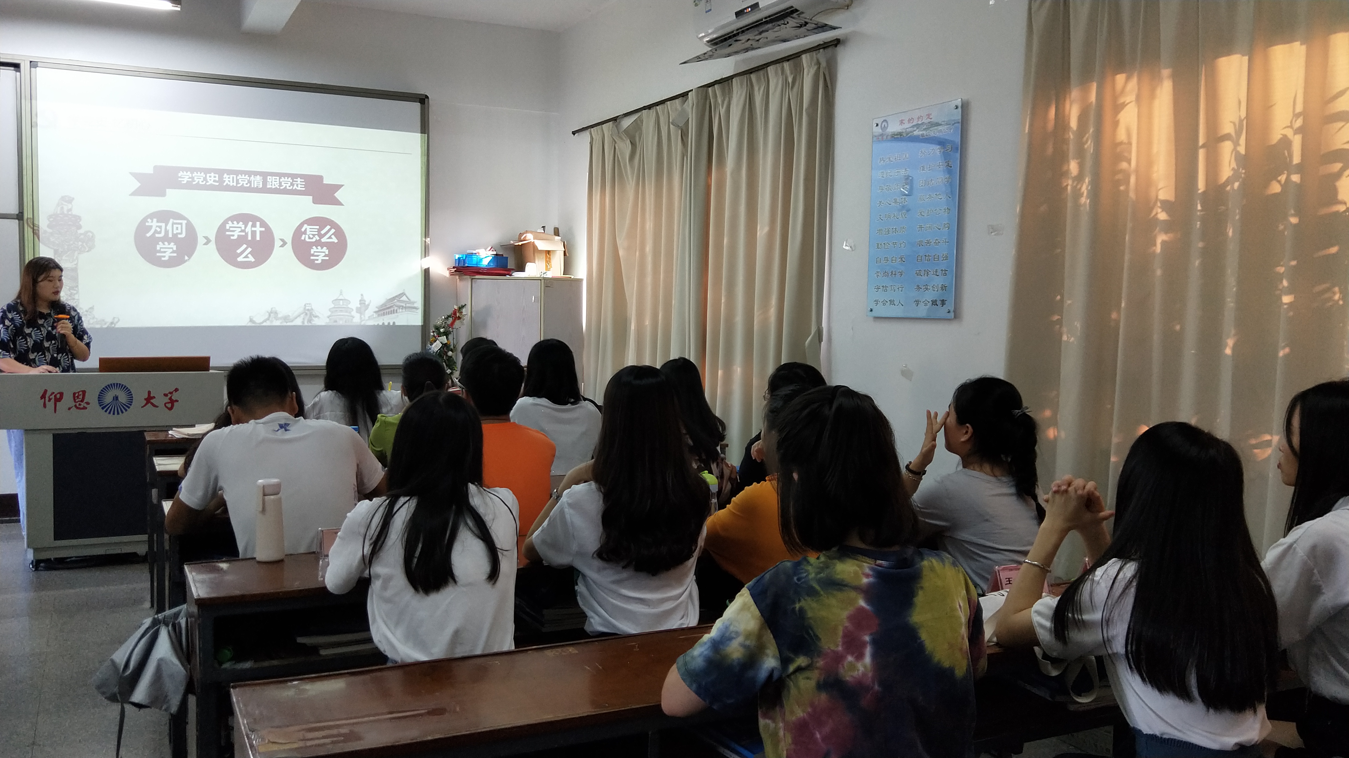 学党史忆初心 党日活动由伍晓容同志主持,她从“中国共产党的光辉历程”“不忘初心,牢记使命”两方面进行了生动的讲解,使在场学生党员对中国共产党史、新中国史有了深入认识。期间,学生党员们纷纷上台分享自己的初心,表示作为一名党员应该要全心全意为师生服务,在日常生活中起模范带头作用。活动还通过播放党史纪录片《信仰》,重温峥嵘岁月,激发了党员同志们的壮志豪情和初心使命。