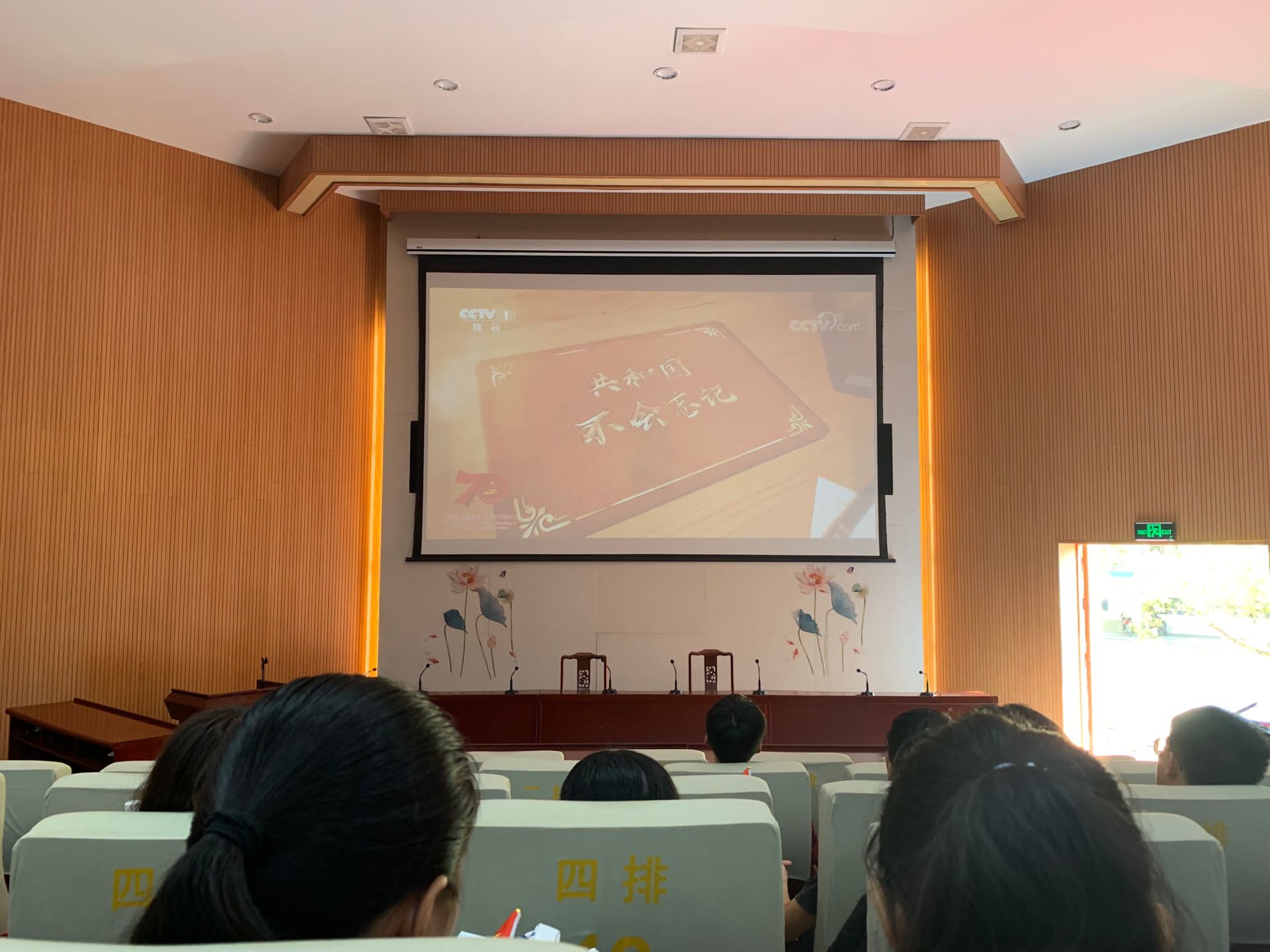 留校师生党员前往多功能报告厅观看大会盛况 习近平总书记在天安门城楼发表重要讲话并乘车检阅受阅徒步方队和装备方队后,气势磅礴的阅兵分列式拉开序幕。激昂的旋律中,各阅兵队伍步履铿锵、雄姿英发,党旗、国旗、军旗迎风飘扬。观看收听庆祝新中国成立70周年大会时况的同时,师生党员们怀着激动的心情纷纷写下对祖国的深情祝福,表达了对祖国繁荣昌盛的美好愿望。