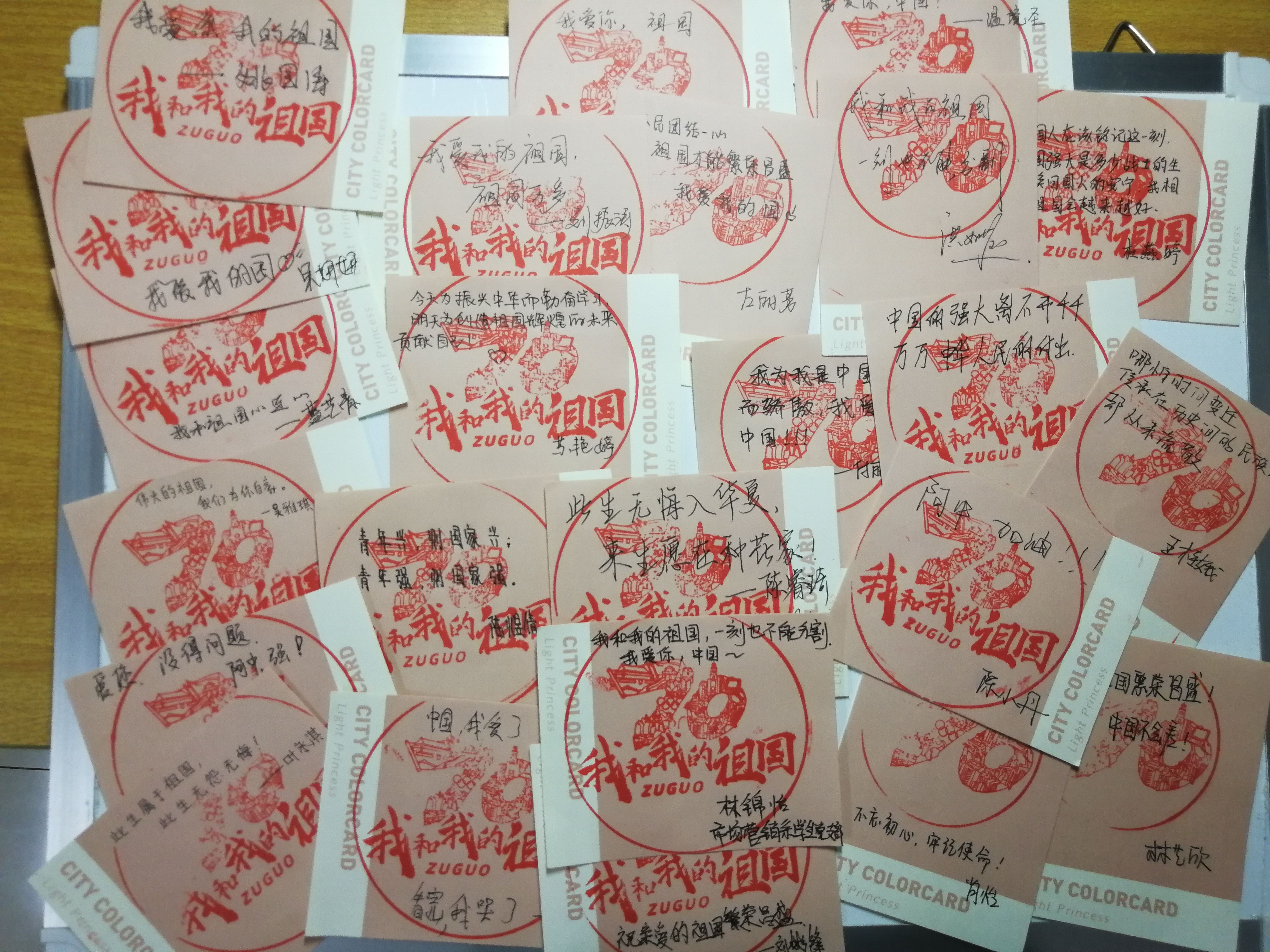 合影 党员同志们首先观看了电影《我和我的祖国》,整个过程中,大家很好的融入了电影,感受其中爱国和拼搏的氛围。大家纷纷感慨,国家的快速发展带来了强烈的自豪感。观影结束后,同学们拿出了纸笔,将此时此刻的感悟进行记录与分享。