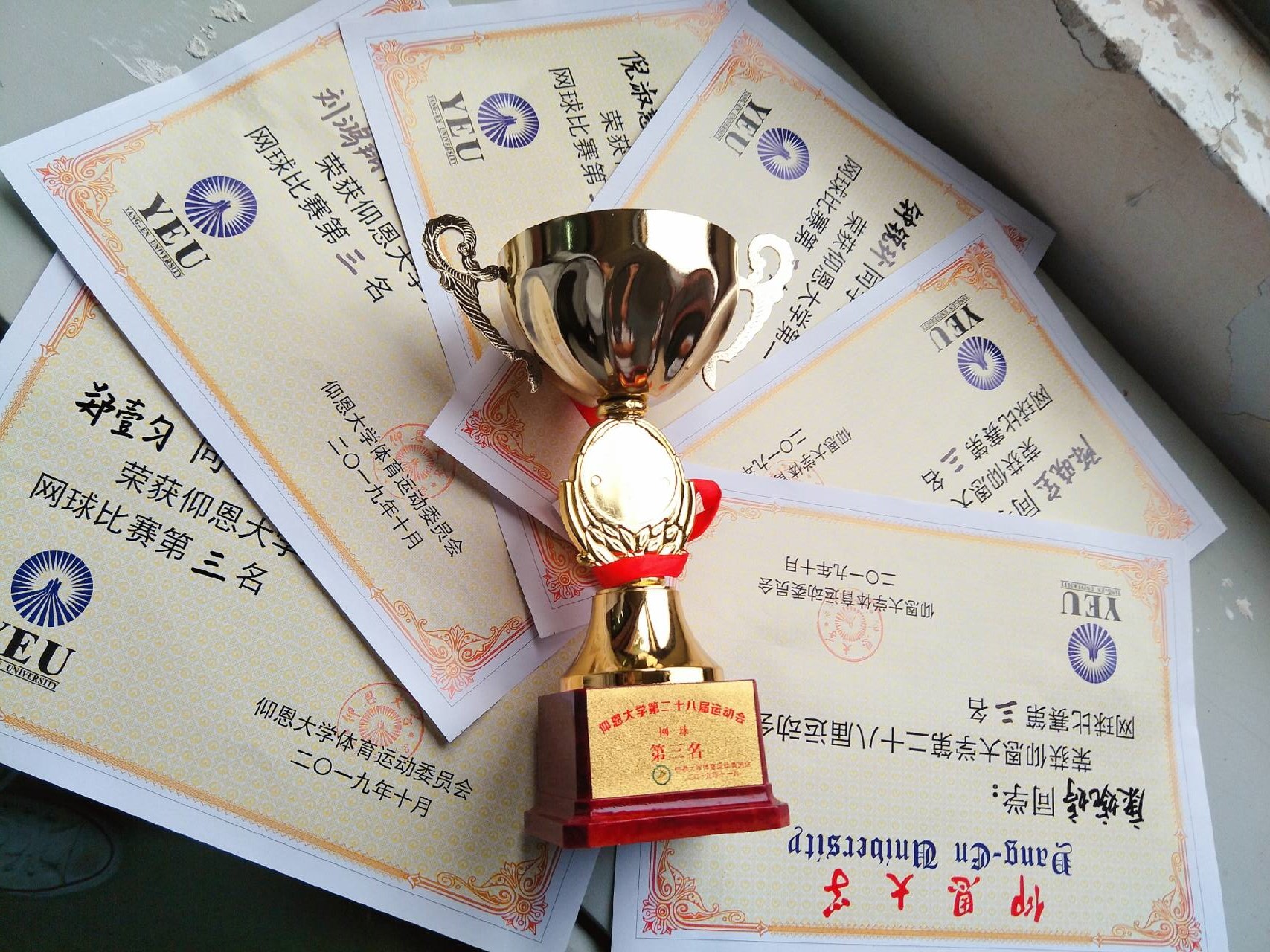 为激发同学们的运动热情,活跃学校体育运动氛围,提高大学生的体质健康水平,10月30日下午,yl6776永利集团第二十八届运动会网球比赛颁奖仪式在第一教学区网球场上正式举行。此次比赛,市场营销系的队伍发扬团队精神取得了季军的好成绩。