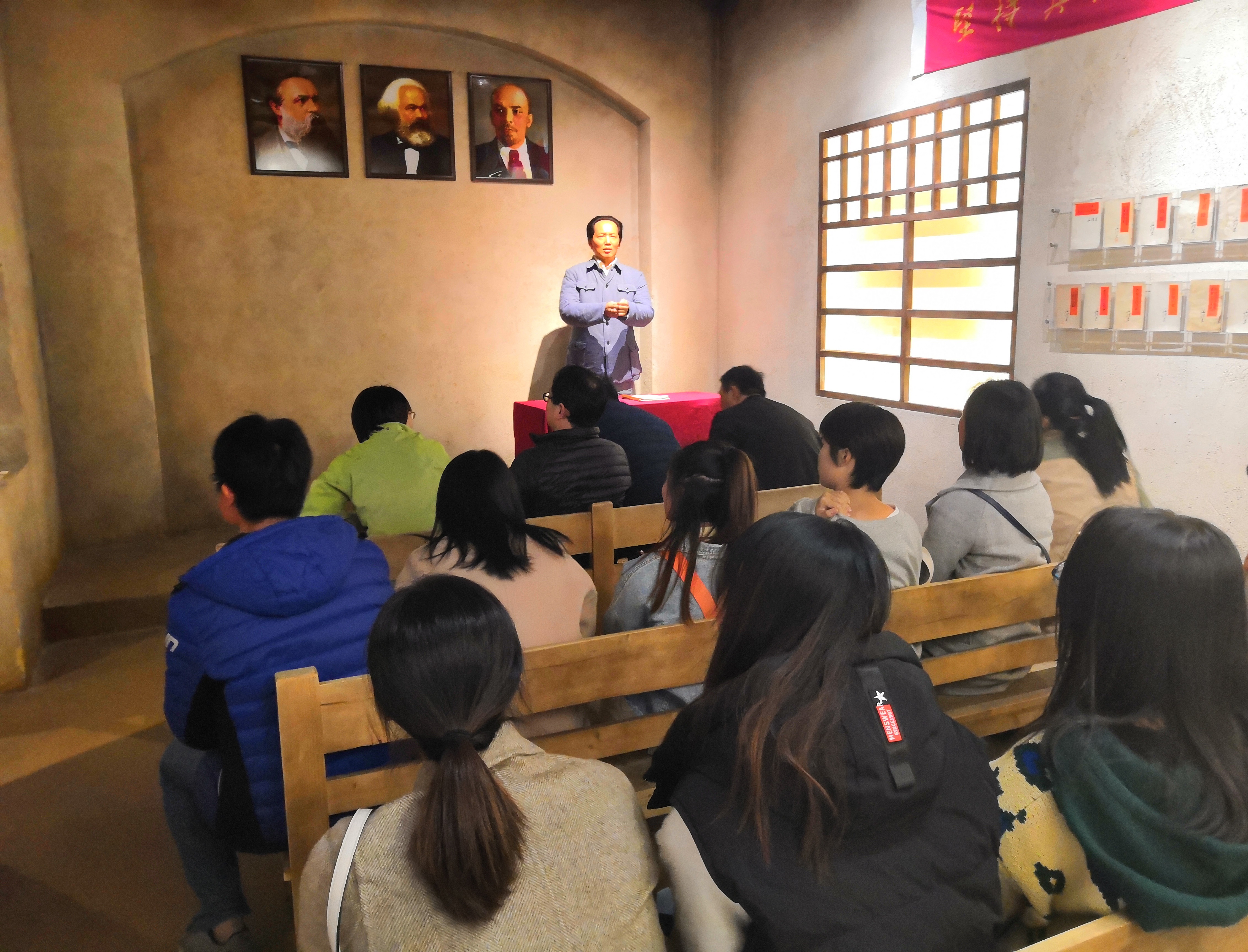 聆听党课 在参观学习过程中,师生党员们在讲解员的引导下,通过小场景、声光电、多媒体等形式,在延安窑洞里聆听毛泽东讲党课、在上饶集中营感受李子芳和叶挺感人肺腑的狱中对话、回顾陈望道翻译《共产党宣言》的场景……大家身临其境接受了党性教育。活动区设置的砺心书吧、初心唤醒室、对照检查室、人民公仆通道、红色家风长廊、党员心声亭、体验感悟室、心灵对白室等,让一行人全方位、多角度地学习了解党内政治生活的发展历程、制度优势、重要内涵和具体要求等内容。