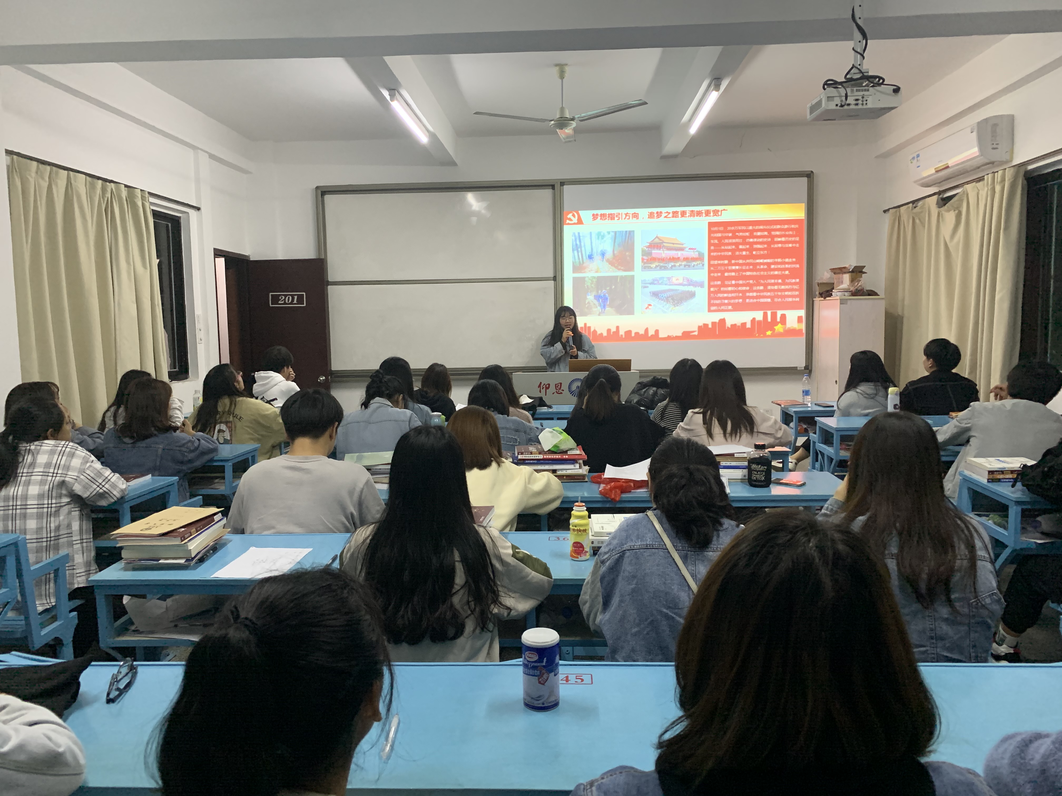 12月17日下午,公共管理系学生党支部于吉龙楼201开展“中国梦提出七周年——向着伟大梦想阔步前行”主题党课学习,支部书记徐鸿飞老师以及全体学生党员、积极分子参加活动。