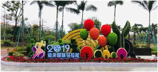 美尚园艺承接制作的“2019汕头国际马拉松”系列绿雕作品之一