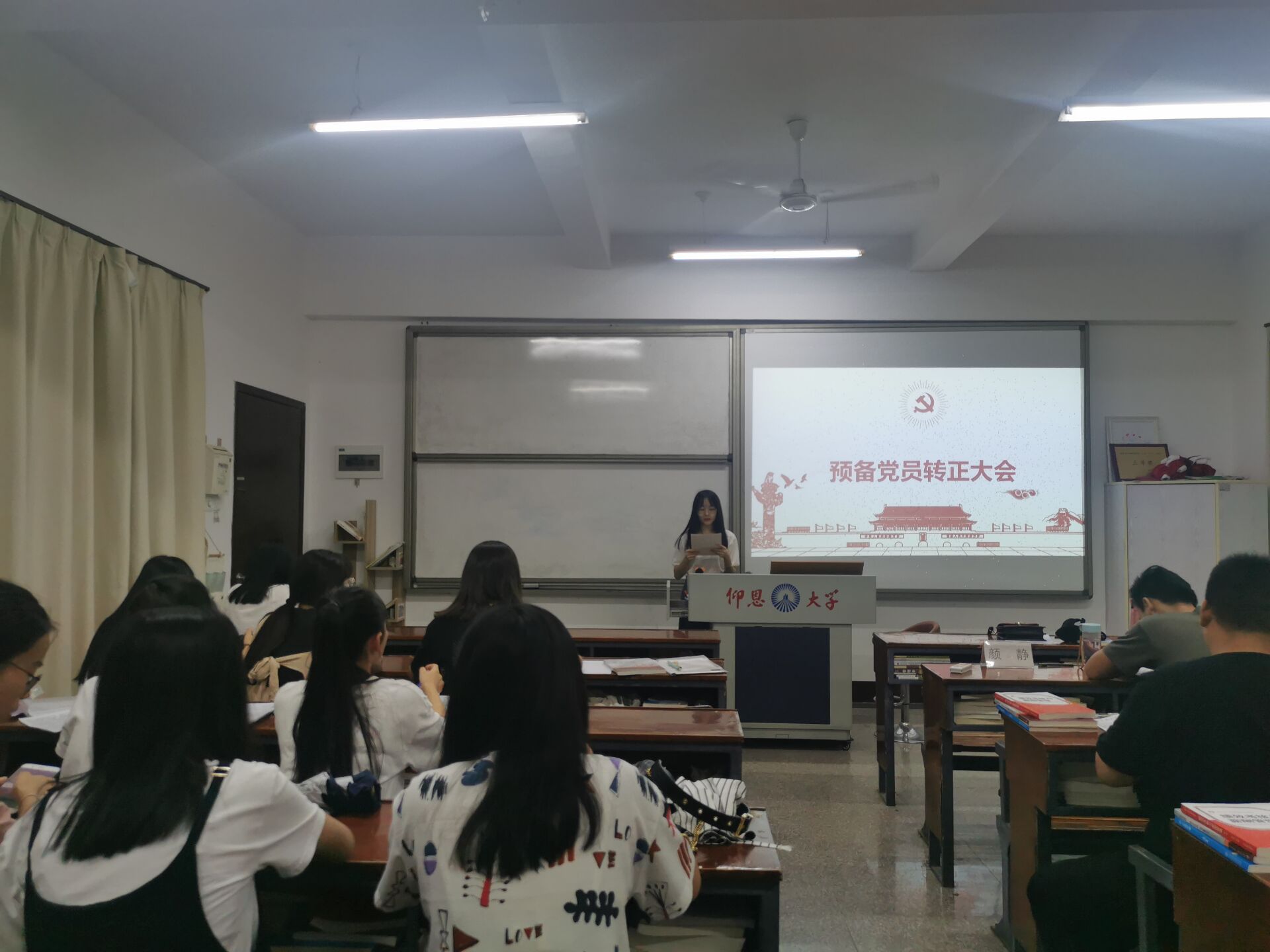 9月9日下午,工商管理系学生党支部于共和楼406开展预备党员转正会议,讨论关于陈淑敏等6名同志申请转为正式党员的问题。出席本次会议的有支部书记蔡惠丽,以及工商管理系学生党支部全体党员。