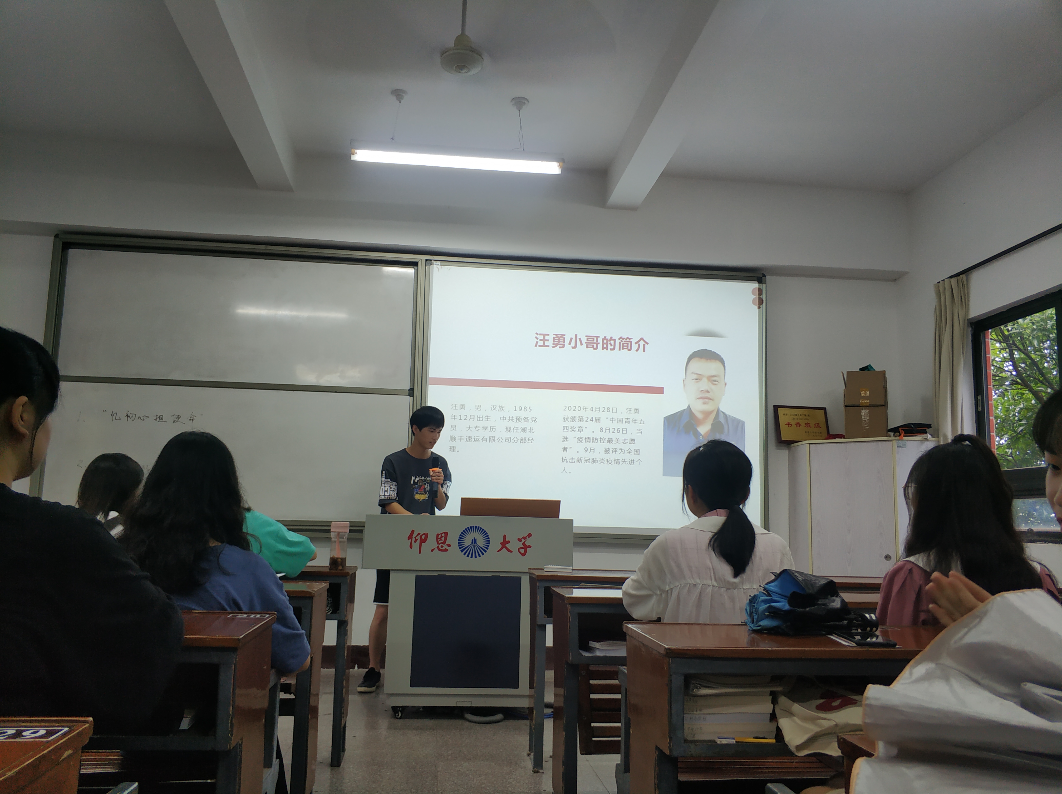 9月24日下午,公共管理系学生党支部全体同志于共和楼312举办以“抗疫天使——快递小哥汪勇”为主题的9月党课分享活动。