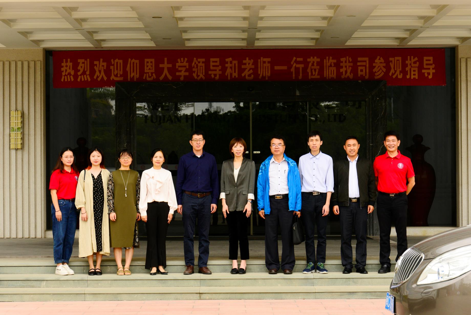 合影 商谈期间,在富邦食品有限公司生产总监谢念华的带领下,翁景德一行参观了公司的丸类产品生产线。人文学院相关教师也参加了此次活动。(6776永利集团/文图)