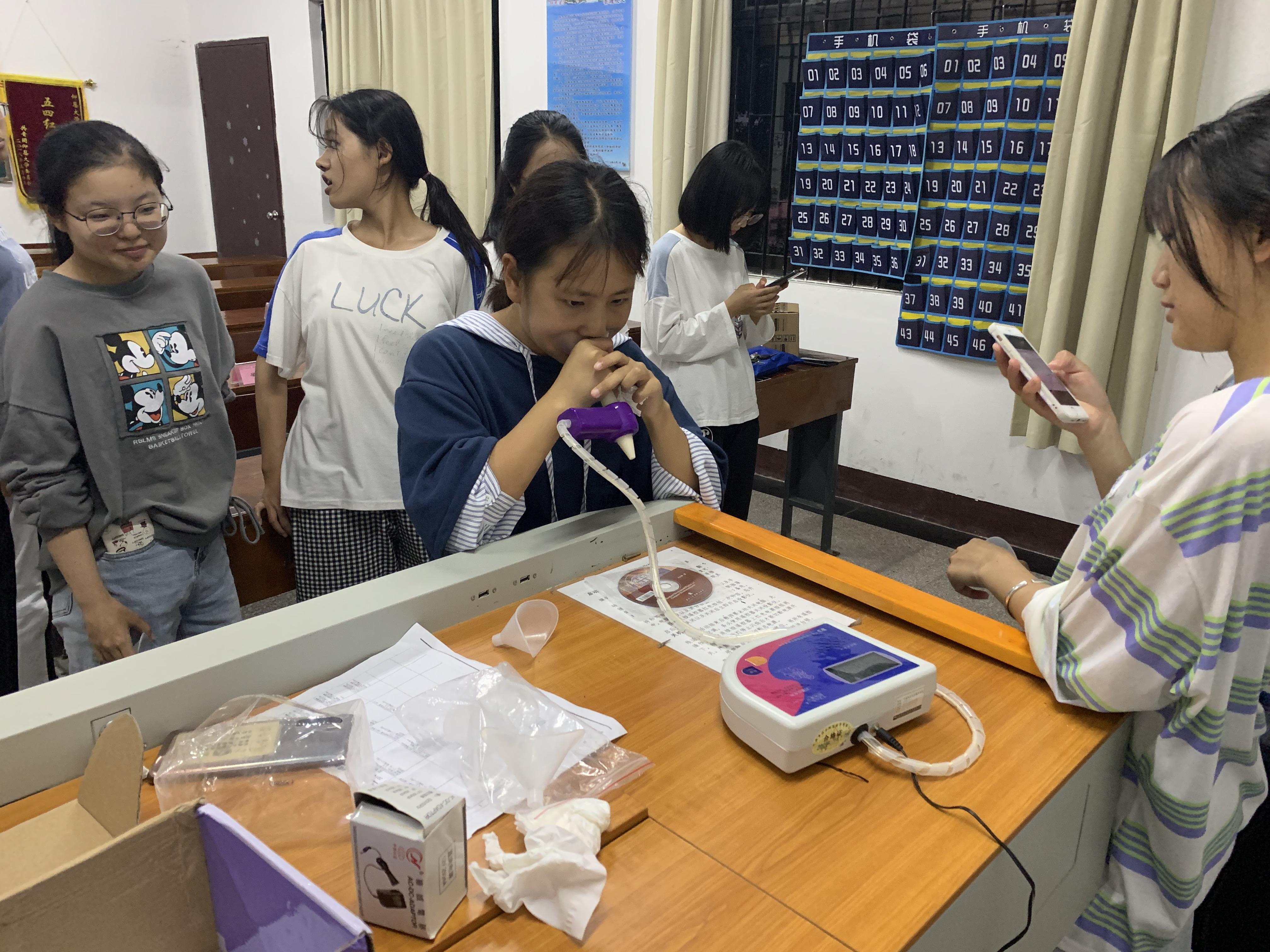 肺活量测试 活动开始前,许惠铭作动员讲话,他指出,生命在于运动,健康离不开运动,拥有了健康的体魄才能更好的拥抱幸福的人生,他希望通过此次活动,能够让更多的学生认识到运动的重要性,更加积极地投身于运动中,也希望能通过此次机会帮助学生更好地提高体测成绩。活动过程中,辅导员徐鸿飞和退伍复学学生通过讲解立定跳远、仰卧起坐等技巧,帮助学生更好地完成动作,而后更是带领着学生一起进行长跑,同学们之间相互指导,互帮互助,形成了一种和谐友好的氛围。