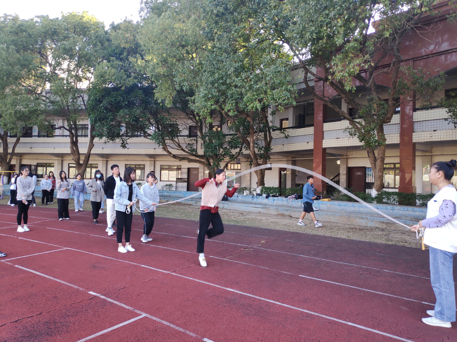 支部同志做热身运动 在比赛过程中,精彩场面随处可见。在跑步项目中,由李丹妮同志领队,绕着仰基场跑圈。起初,支部同志精力充沛,到最后几圈,同志们虽然有点累,但毫不放弃,继续咬牙坚持。在跳绳项目中,支部同志灵活跳跃,技艺高超,在绳子的一张一扬下自如穿梭。经过一小时的角逐,分别评选出两个项目的第一名。