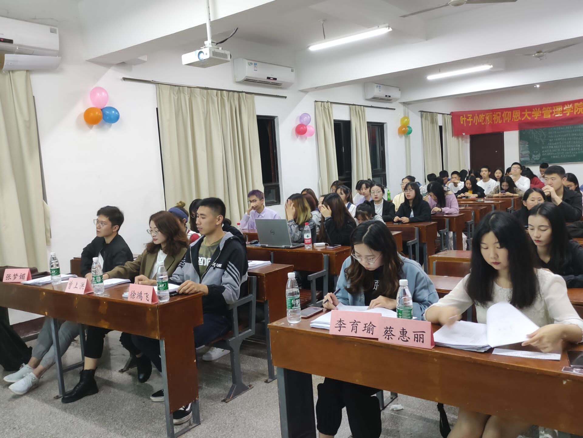 活动现场 本次团日活动共有11个团支部晋级院赛,各班团支部围绕本次团日主题开展班级团日活动,通过PPT汇报、现场表演等形式展现各班风采。在比赛现场,2020级市场营销2班团支部展示了由同学们亲手制作的盲盒,用惊喜和祝福表现抗疫的决心;2020级市场营销1班团支部展示了油纸伞、纸雕一类的艺术品,弘扬传统文化,展现中国风采;2020级人力资源管理1班团支部用木偶戏来表达“抗击疫情,人人有责”。在比赛过程中,各班团支部精彩的演讲和汇报赢得现场观众阵阵热烈的掌声。