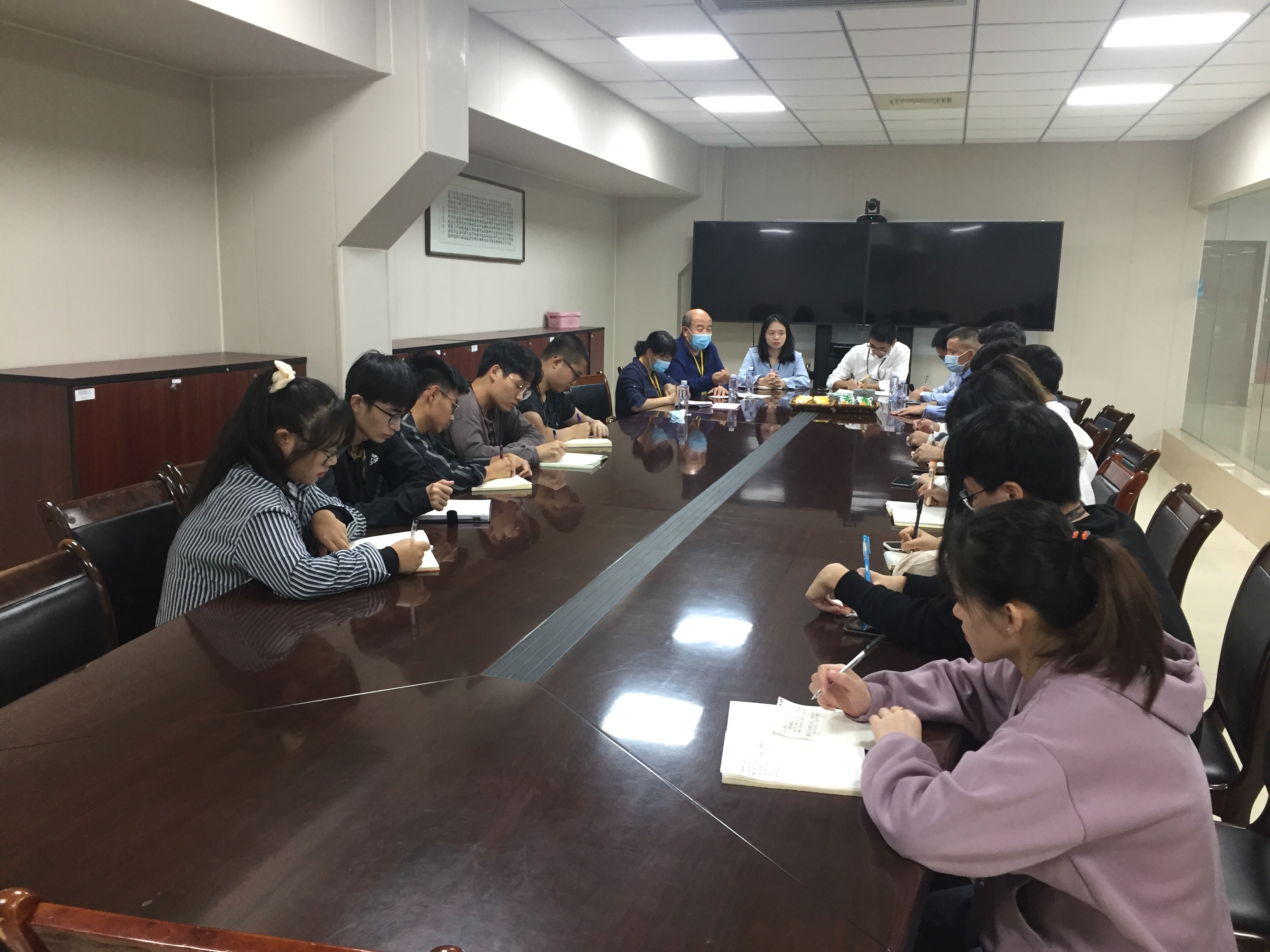 与学生开展座谈交流 在企业,学生们逐一汇报了开展实践以来个人在企业的工作、生活和学习的情况以及个人的收获与感悟,企业代表也对近两周以来学生专业综合实践的表现给予高度肯定并提出下一阶段的要求。疫情防控领导小组成员分别就学生实践期的疫情防控工作提出具体明确的要求,同时勉励学生在企业要充分利用好实践平台,牢记学生的角色,勤学好问,不断提升个人职业竞争力,为企业创造价值,为学校争光。