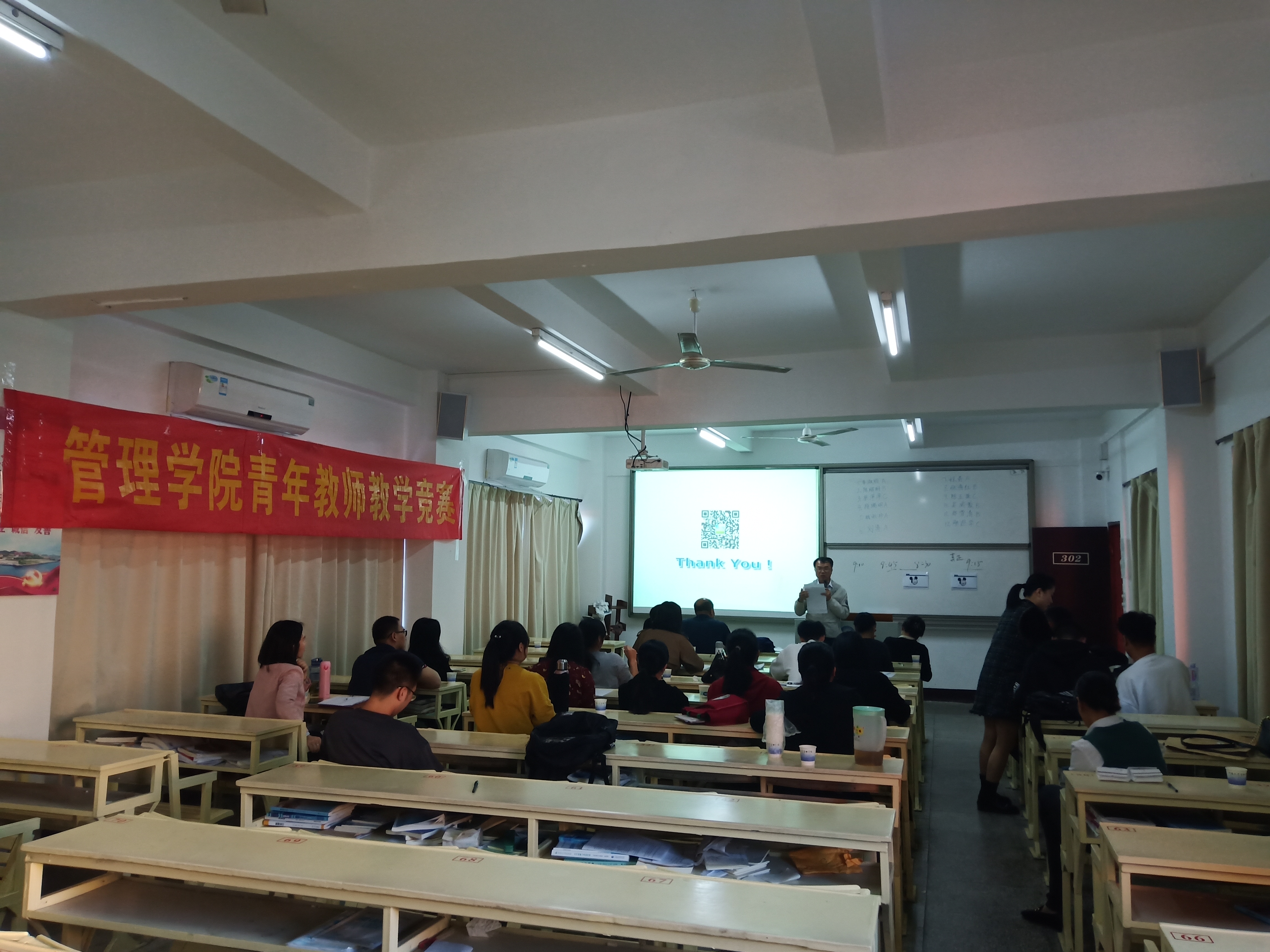陈绍炯老师上台讲课 竞赛以“上好一门课”为竞赛理念,本次院级竞赛由教学设计(教案)、课堂教学两部分组成,成绩评定采用百分制,权重分别为20%、80%。参赛教师为此次比赛做了精心的准备,比赛过程中每个参赛老师都使出浑身解数,通过精彩的语言、富有感染力的表情动作和生动有趣的讲解,把各自的教学特色展示得淋漓尽致,讲课条理清晰,课件新颖生动,内容各具特色,充分展示了教师的教学风采和教学特点。经过激烈的角逐,最终张燕红、陈绍炯老师获得一等奖,程春、李淑娟、张迎华老师获得二等奖,陈玉珠、蔡萍萍、吴威豪老师获得三等奖。