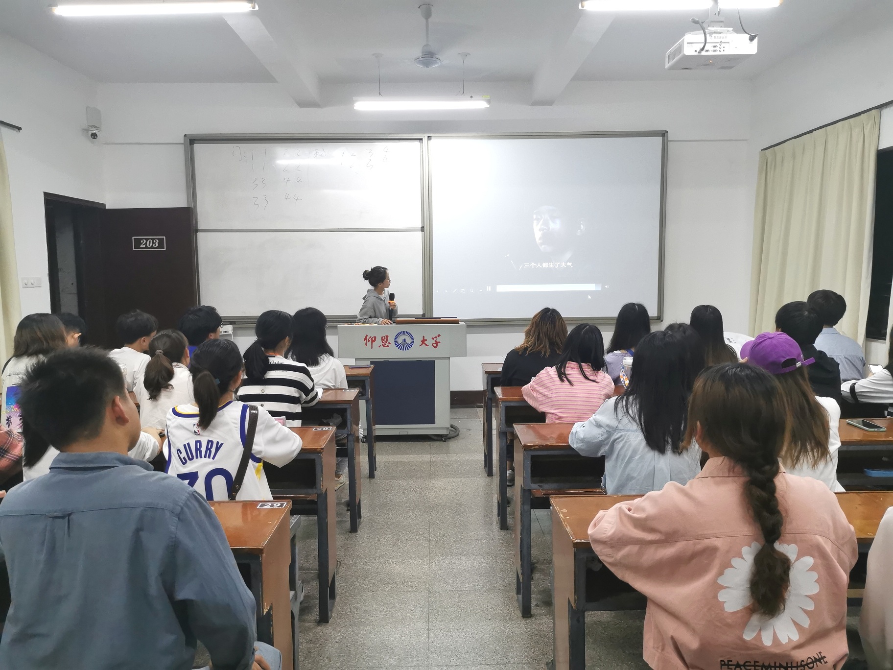 观影现场 放映结束,学生会主席团成员以及各部门干部就电影中的情节发表自己的观影感言,明白了要牢记历史、唤醒记忆,要时刻铭记现在的幸福安康生活来之不易,要把对党、对国家、对人民的无限忠诚融入血脉并落实到日常生活中。(文/黄馨 图/洪玉珊 审核:连景霞)