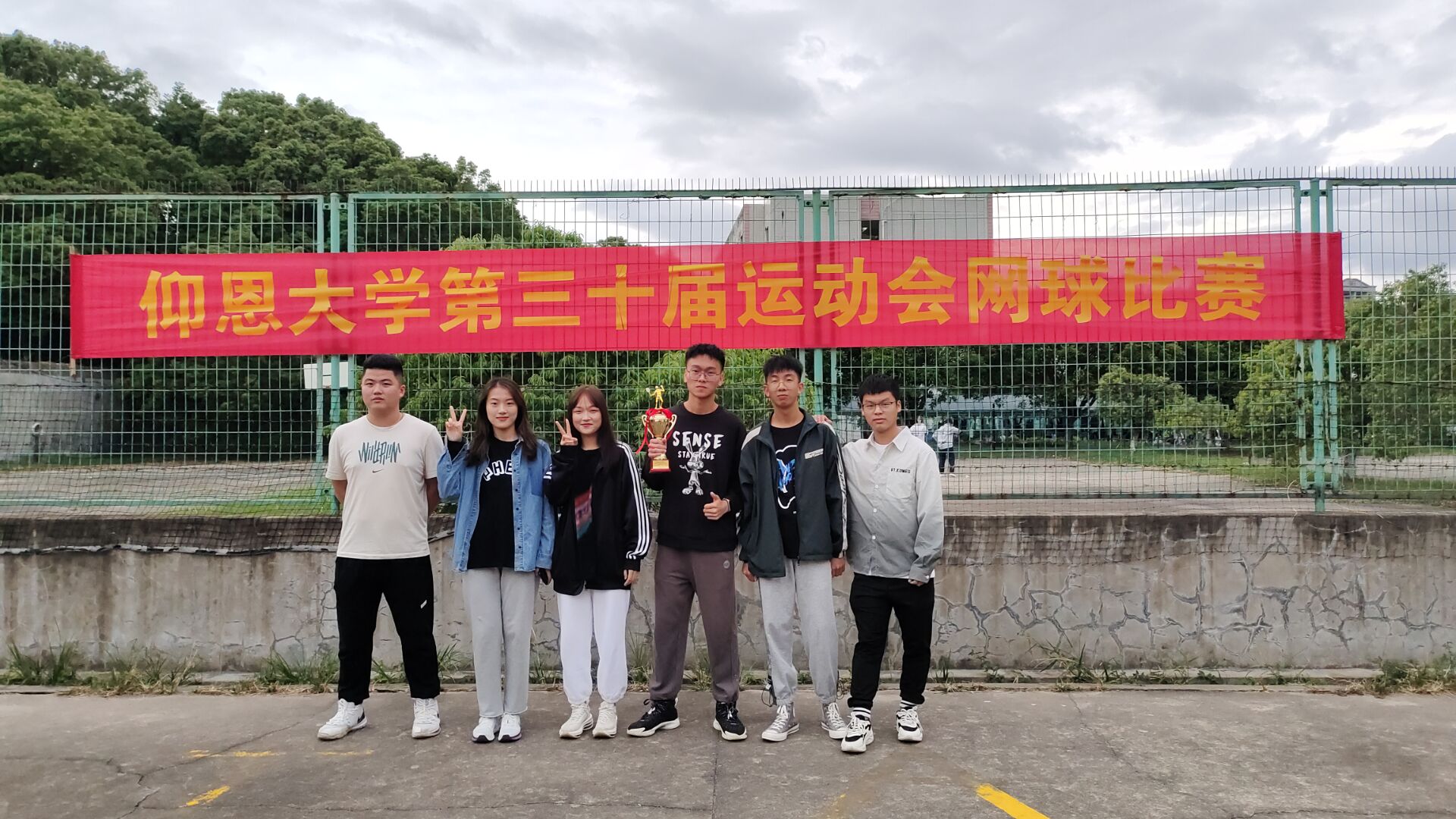 合照 比赛中,物流管理系选手以积极乐观的心态投入比赛中,在网球场上一展大学生的活力风采。小小的网球在空中不断传递,热血拼搏的汗水在赛场上挥洒,为各系的荣誉捍卫到底。最终我系以男单6:0,女单6:1,混双6:1的成绩遥遥领先,战胜工业工程系。