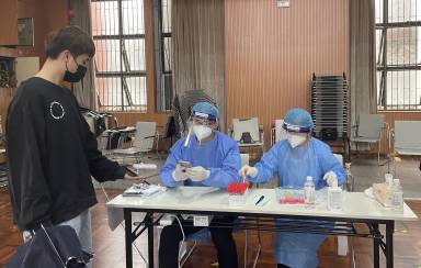党员教工指导学生进行核酸检测信息登记