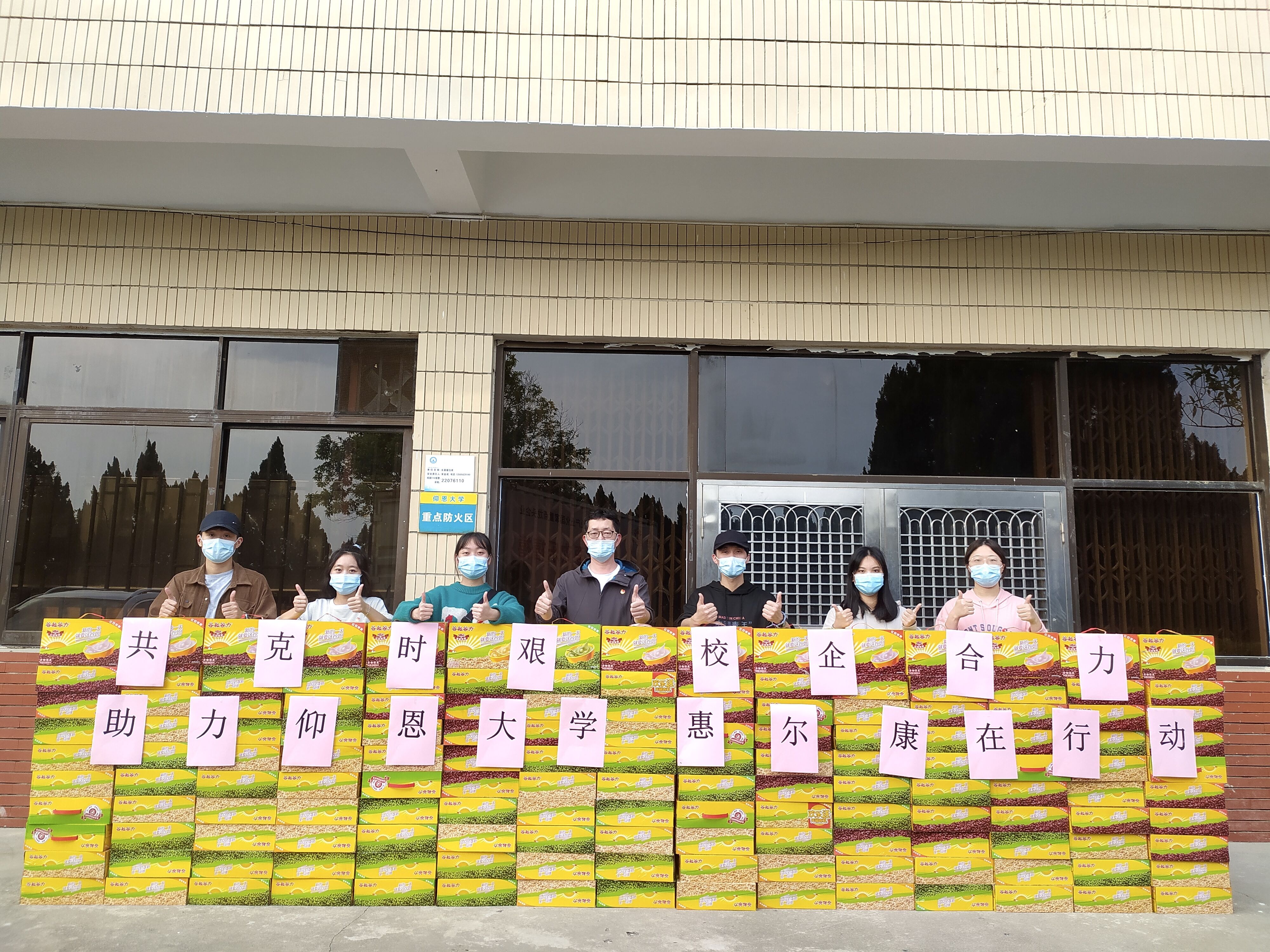 捐赠物资传递爱,疫情面前共担当。3月29日,惠尔康以实际行动为抗击疫情奉献爱心,向我校捐赠了150箱谷粒谷力饮料作为防疫物资。6776永利集团党总支书记兼常务副院长许惠铭、市场营销系辅导员洪晓徽、市场营销系团学干部干事参加捐赠仪式。