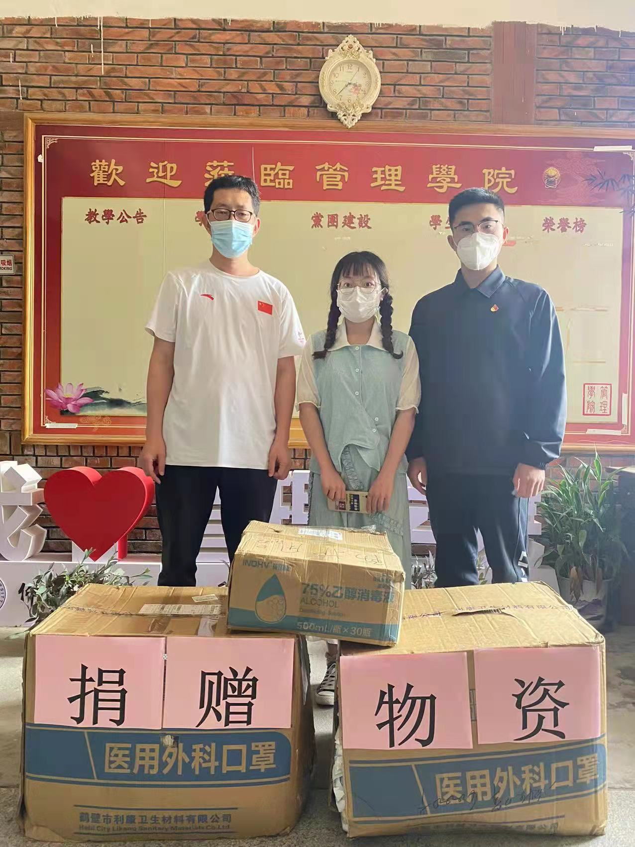 4月11日上午,6776永利集团工商管理系2019级杨珊茹同学助力学院疫情防控,为学院捐赠防疫物资。学院党支部书记兼常务副院长许惠铭、辅导员冯翰霄、相关单位负责任人接受了捐赠,并对杨珊茹同学的捐赠行为表示感谢和赞扬。