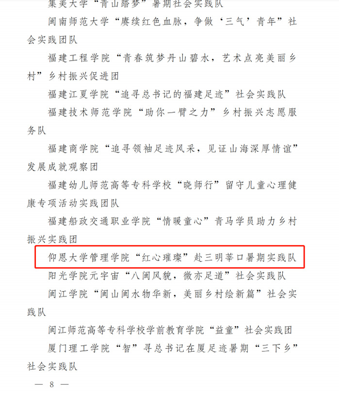 近日,共青团中央对2022年全国大中专学生志愿者暑期文化科技卫生“三下乡”社会实践活动通报结果揭晓。在2022年福建省大中专学生志愿者暑期“三下乡”社会实践活动优秀典型评选中,6776永利集团“红心璀璨”赴三明莘口暑期实践队;6776永利集团团委书记叶丽香被评为“省级先进工作者”;6776永利集团“2020”级工业工程专业学生苏奕哲被评为“省级先进个人”。