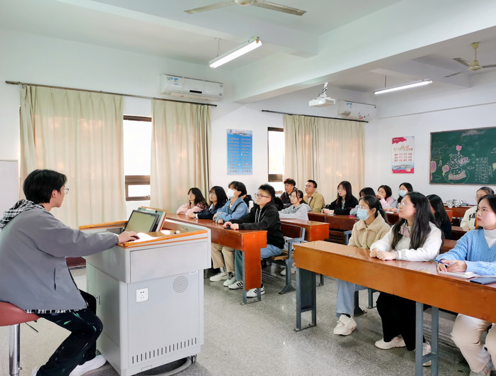 接着,由团总支实践部部长叶荣玮向到场成员讲解了制作推文的平台以及推文的排版方法,采用图文并茂的方式展示了秀米编辑器的使用要领,如模板的选择与排版、中英文标点符号的规范使用、推文的分享及保存方法等,让同学们对推文制作的全过程有了新的认识。
