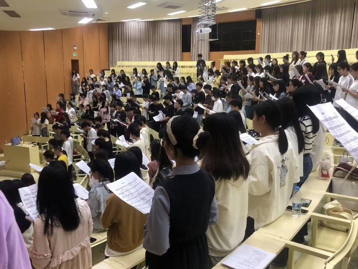 本次排练十分顺利,有了前几次的排练基础,同学们之间磨合得更加默契。对于歌词和旋律也十分熟练,不同声部之间的合唱也都更加出色。排练到最后,同学们都没有懈怠,而是更加高昂的唱出《我们走在大路上》与《满江红》。