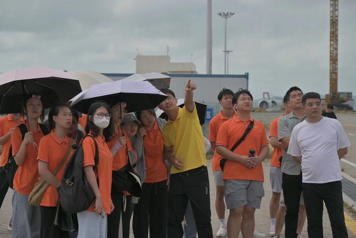 实践队师生跟随港区工作人员深入平潭金井港区现场,工作人员介绍到:“台北快轮”船长167米、总吨位1.8万吨,是目前入境平潭港最大吨位的高速货物滚装船,从平潭往返台北港单程仅需5.5小时,极大推动两岸货物贸易往来,助力平潭打造对台海上贸易“黄金通道”。指导老师陈绍炯还利用港区资源展开现场教学,详细介绍集装箱、岸桥、轮胎吊等各类港区机械设备,并对同学们提出的疑惑及问题进行解答。