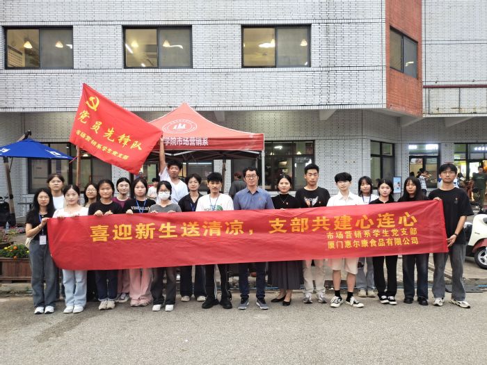 9月7日-8日,市场营销系学生党支部联合厦门惠尔康食品有限公司于普照大礼堂门口开展“喜迎新生送清凉,支部共建心连心”党建活动。