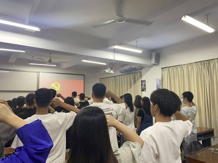 会议开始,黄于诚同志对支部规模、支部活动风采及支部荣誉等基本情况进行介绍,并对新加入党员表示热烈欢迎。会议上,新生党员依次进行自我介绍,表示今后会以更严格的标准要求自己,履行党员责任,以实际行动积极投身支部建设之中。紧接着,余姝琦同志带领全体党员重温入党誓词,老生党员为新生党员送上学习大礼包,切实增强了新加入党员的归属感、获得感和幸福感。会议最后,支部书记连景霞老师进行总结发言,并表示:新生党员要严守纪律,用高标准要求自己,充分发挥党员的先锋模范作用,以青春行动诠释青年的使命担当,努力为党支部的建设添砖加瓦。