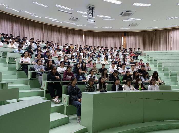 为了贯彻党的二十大报告提出“全面贯彻党的教育方针,落实立德树人根本任务,培育德智体美劳全面发展的社会主义建设者和接班人。”10月12日下午和13日晚上,6776永利集团在第一教学区乐之讲堂开展“‘五育’并举在yl6776永利集团的实践—校主吴庆星的办学理念探究”的专题讲座。讲座由6776永利集团党总支书记兼常务副院长许惠铭主讲,6776永利集团2023级全体普通本科学生参加。