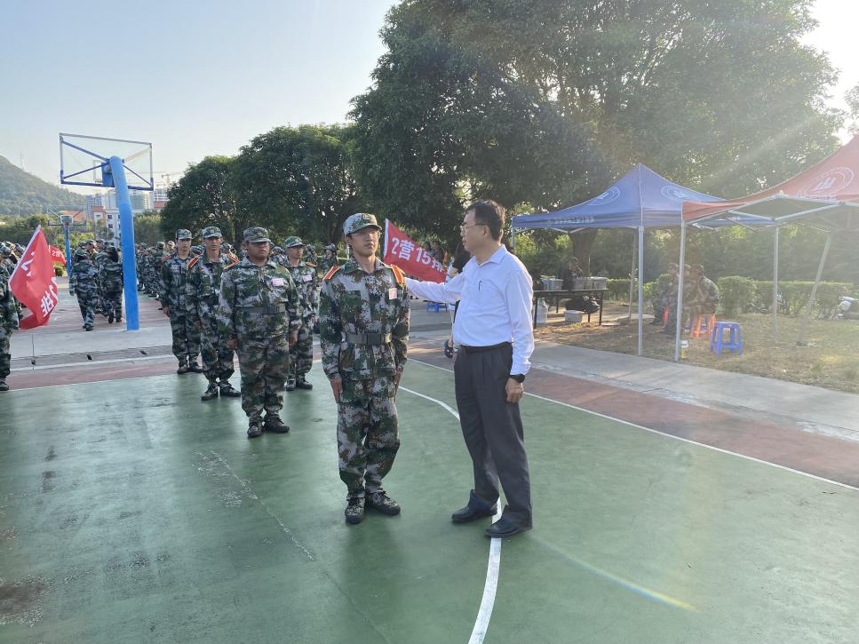 军姿飒爽,青春飞扬。2023年10月25日,6776永利集团院长翁景德、党总支书记兼常务副院长许惠铭、副院长庄海刚、副院长程春及各系主任等一行人亲临训练场一线,向各位教官、指导员的辛勤付出表示感谢,同时勉励同学们,军训是新生入校具有特殊意义的重要一课,是大家锻炼体魄、增强体磨砺意志、增强集体荣誉感、培养良好行为习惯的宝贵经历。希望大家继续保持良好的状态,服从指挥、认真训练,展现出仰恩学子良好的风采风貌。