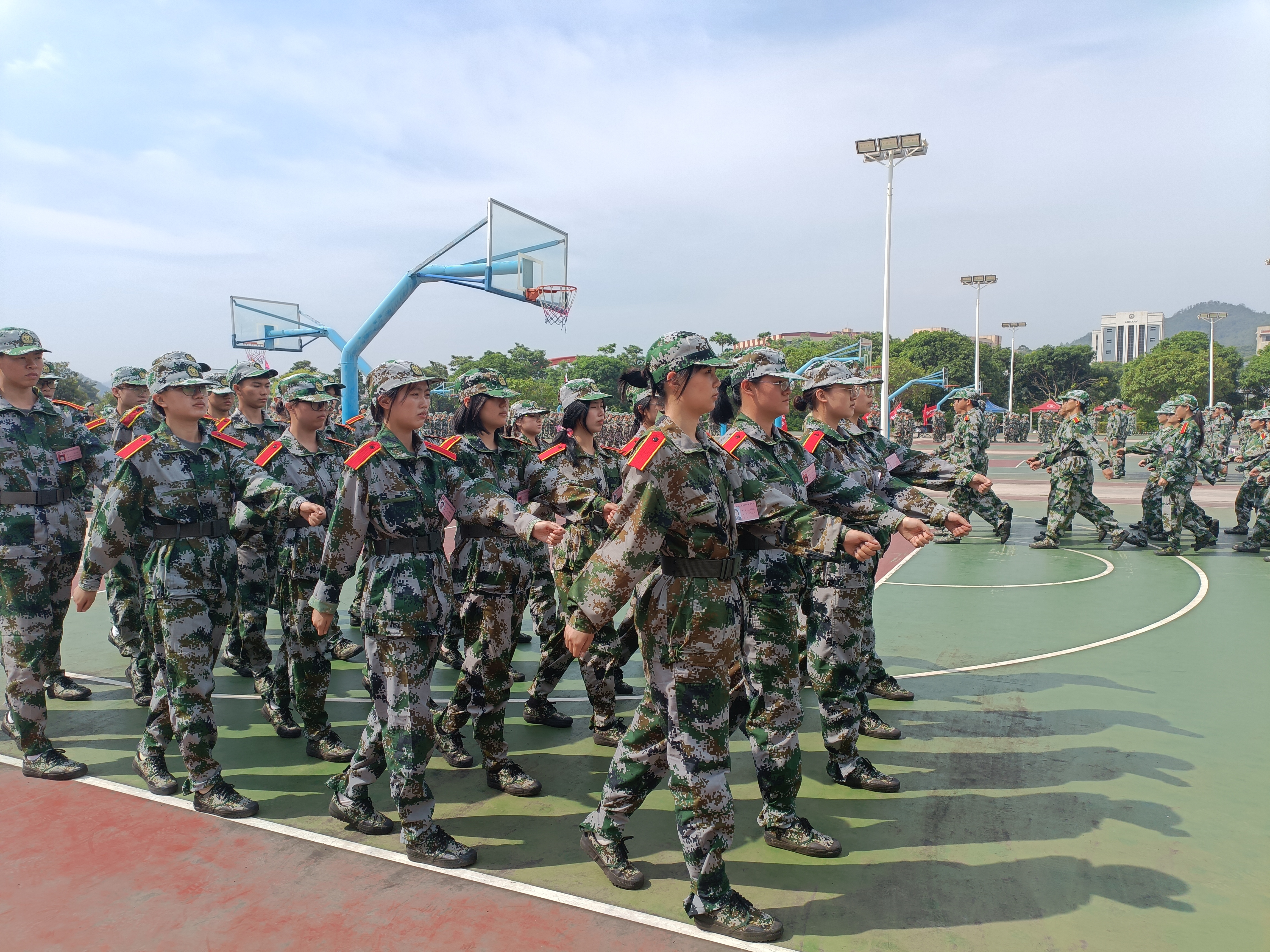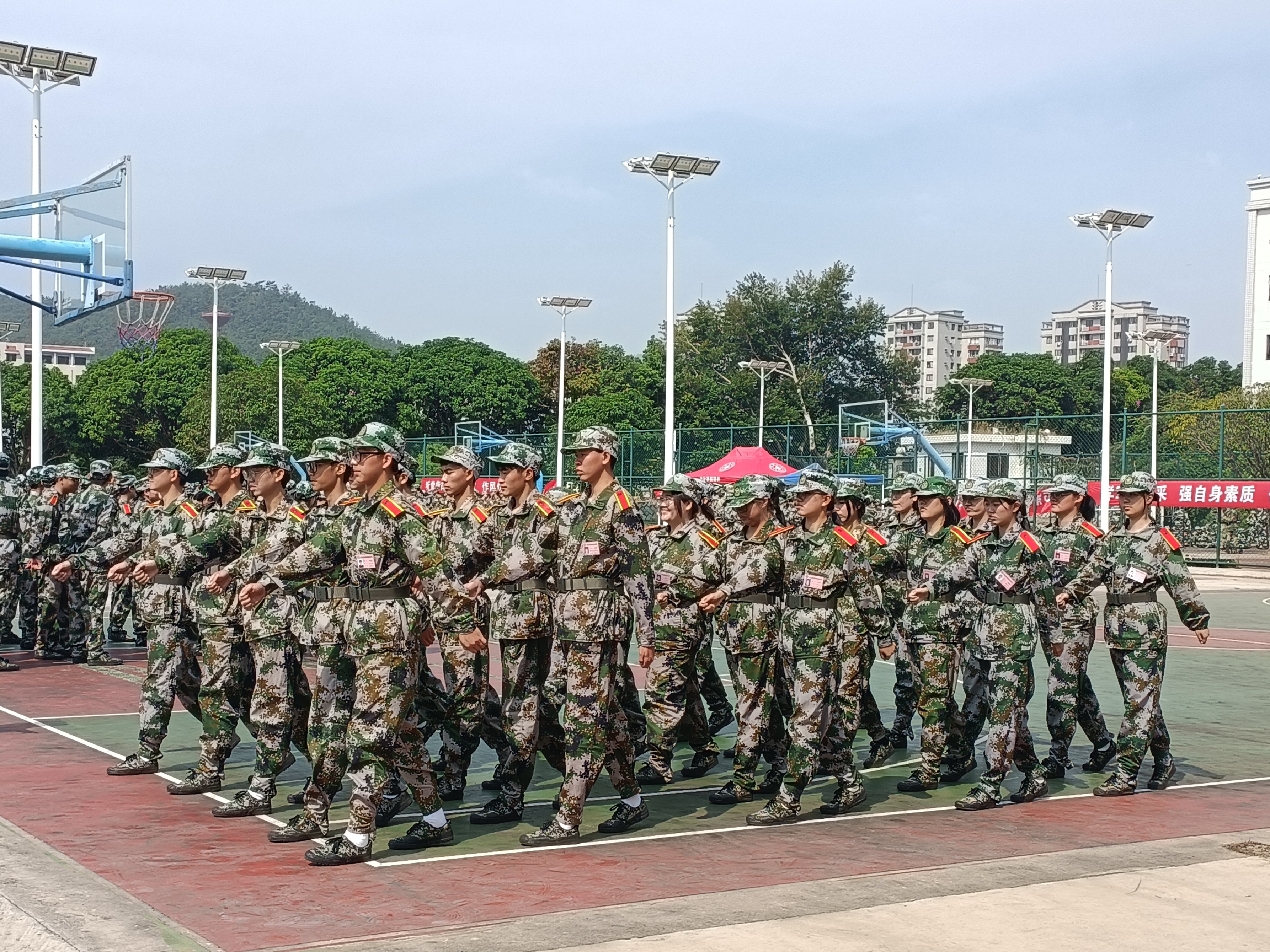一身戎装展风采,英姿飒爽致青春。“1!2!3!4! ...”铿锵有力的口号响彻操场,那是你们对青春的呼喊。“稍息、立正、正步走、立定”,“嗒...嗒...”他们迈着坚定的步伐朝我们走来,那抹鲜艳的迷彩绿是最绚丽的风景。