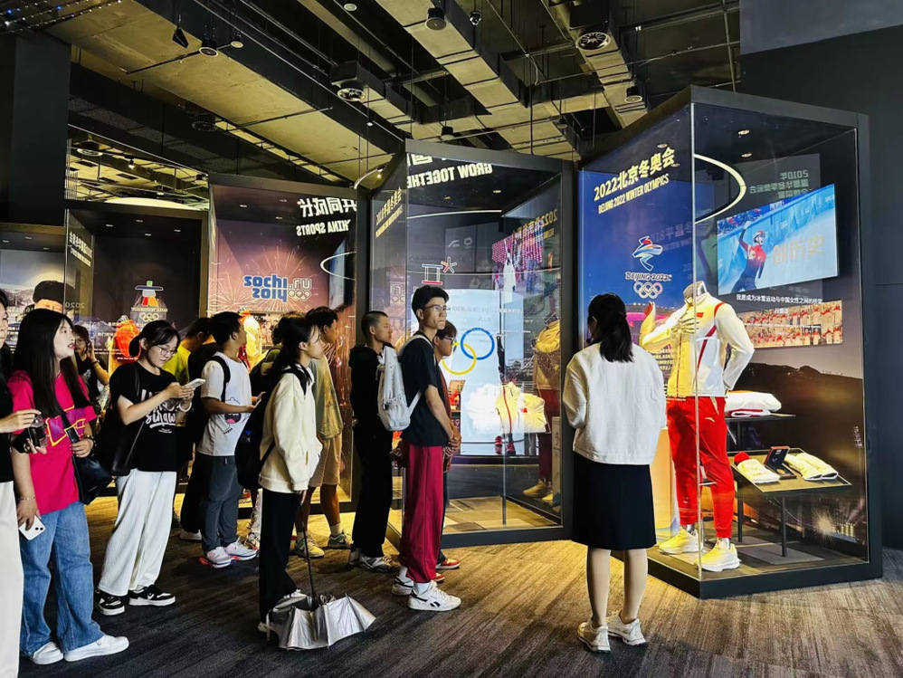 在参观安踏博物馆时,同学们在安踏集团工作人员的讲解下,了解了安踏集团的发展历程。同时同学们认真观看企业文化视频介绍,听取工作人员讲解安踏的企业品牌文化,也进一步了解了安踏以及旗下斐乐、始祖鸟等品牌。