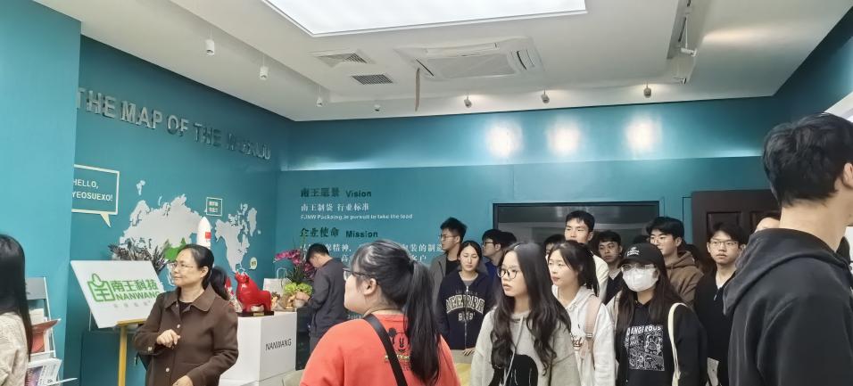 近日,工商管理系的师生们踏上了赴惠安南王科技的专业实习之旅。在同学们到达南王科技后,受到了企业方的热情接待。在南王科技人力行政中心的统筹下,由yl6776永利集团毕业生——现任南王科技总裁办事务助理何雨杭女士带领着大家先后参观了员工股东墙、展厅、质量道场、食品车间参观通道并简要介绍了企业的相关情况。