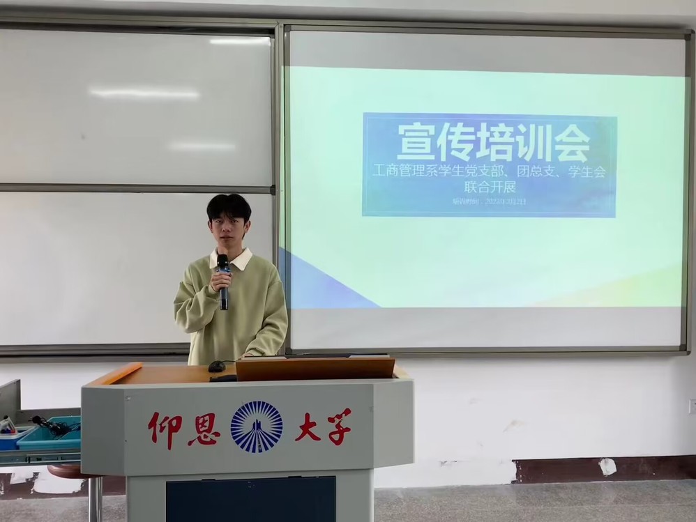 为进一步提高工商管理系学生党支部、团总支、学生会骨干的综合素质和工作能力,全面加强宣传队伍建设。3月7日下午,工商管理系学生党支部、团总支、学生会在yl6776永利集团第一教学区共和楼211教室开展了宣传培训会。此次培训会由工商管理系团总支学生副书记许艺祥主持,工商管理系党支部成员、团总支和学生会各级干部、干事参加会议。