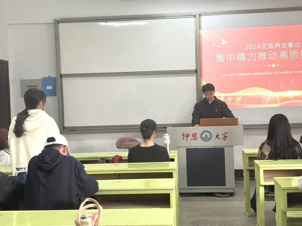 3月15日下午,工商管理系学生党支部于共和楼307教室开展“集中精力推动高质量发展全国两会”主题党课学习。工商管理系学生党支部全体党员参加此次活动。