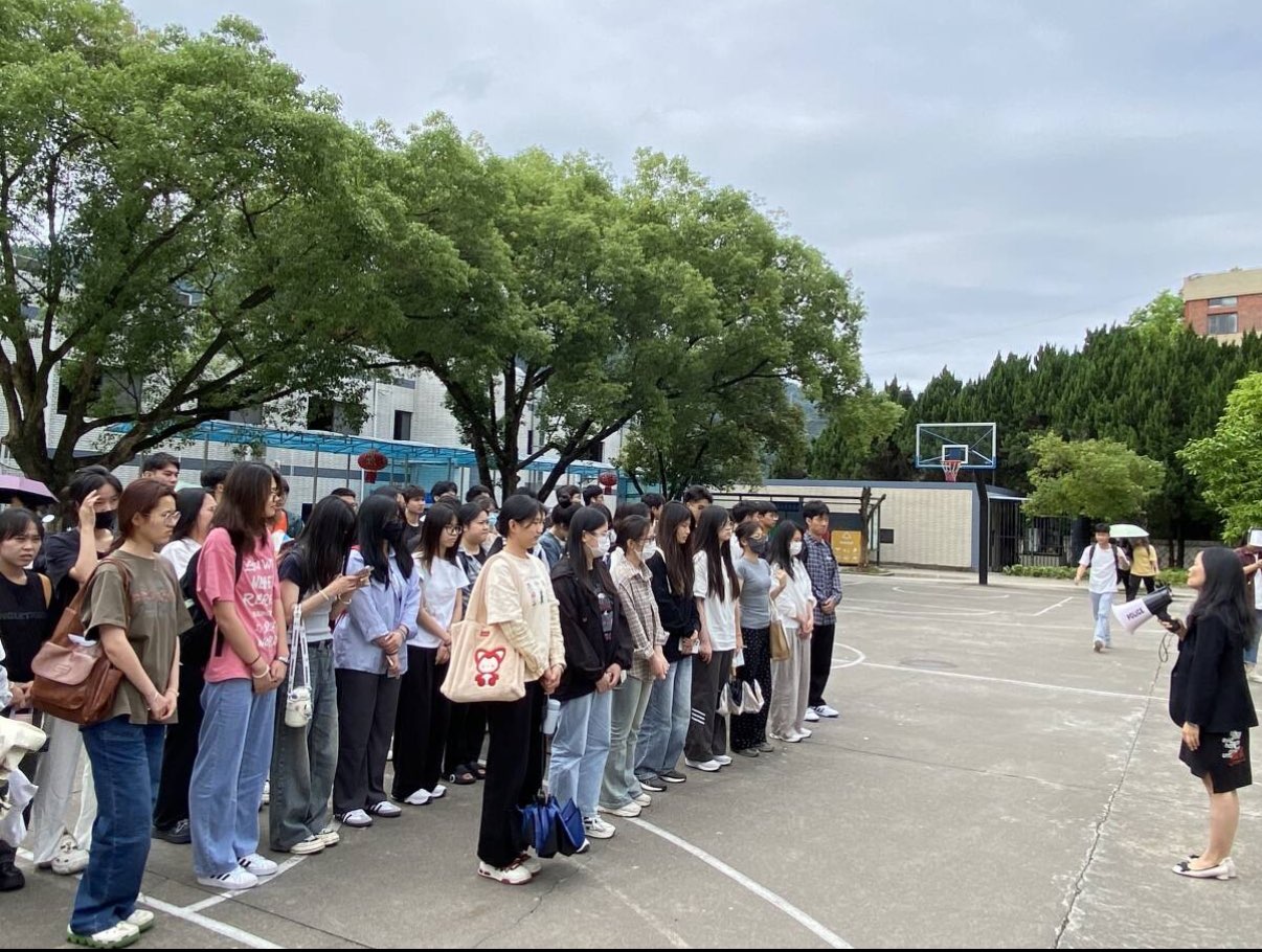 在演习开始前,同学们先在实验室旧图301模拟上课,当预定的铃声响起时,同学们迅速按照火灾逃生的标准规范行动,他们用衣物或手紧紧地捂住口鼻,以保持呼吸道的通畅,并弯腰低头,沿着指定的疏散通道有序撤离。与此同时,我院的老师们在三楼及以下楼层负责维护秩序,引导学生进行疏散,防止意外事故的发生。